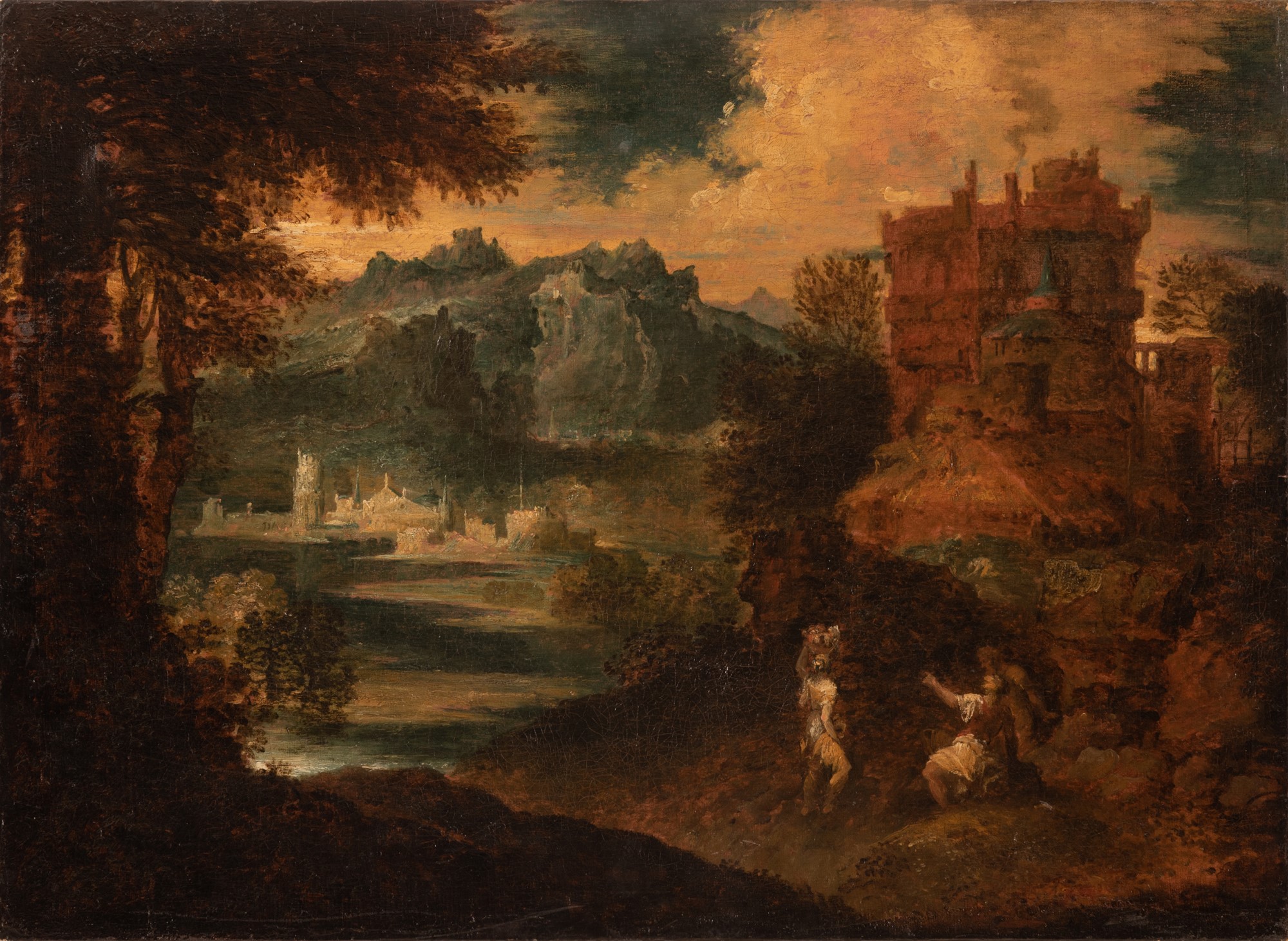 Pittore del Nord Europa attivo in Italia nella seconda metà del XVI secolo inizi del XVII secolo Paesaggio con figure