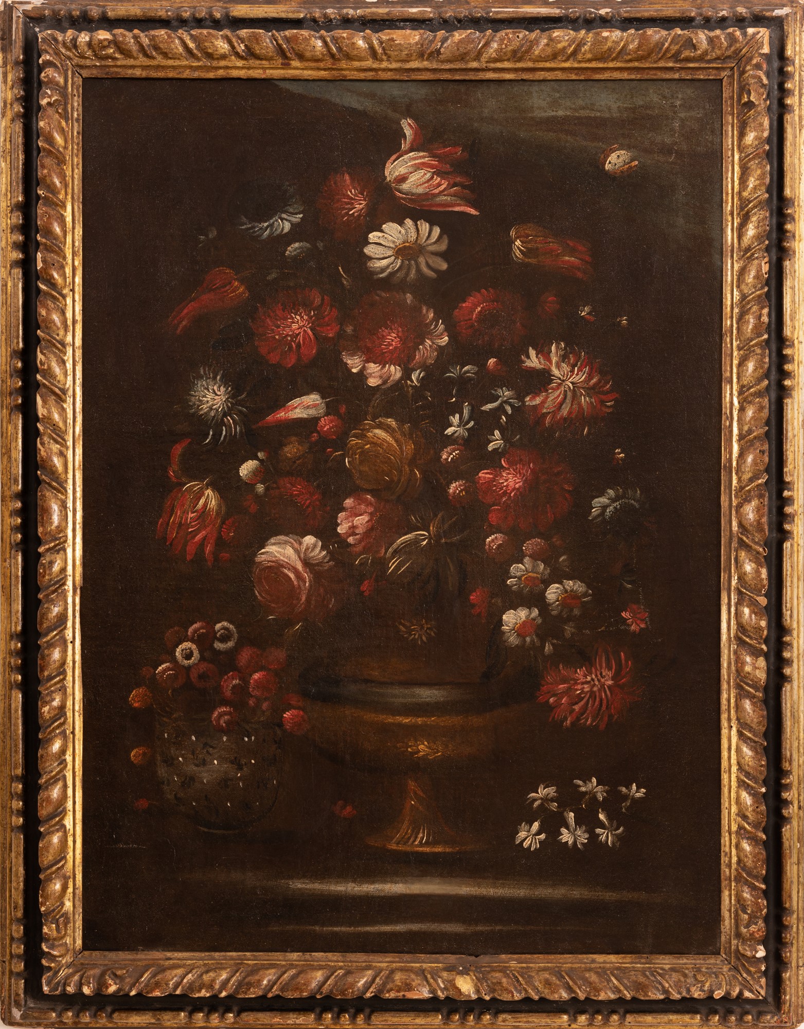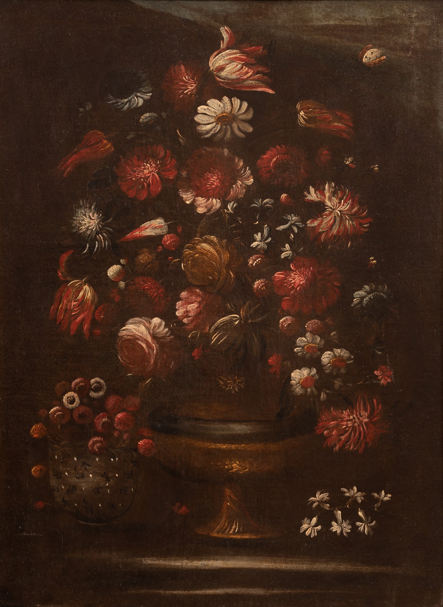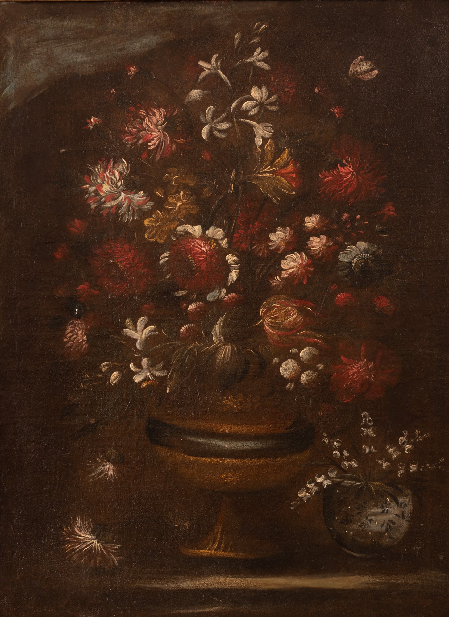 Pittore romano della fine del XVII e del XVIII secolo Coppia di nature morte raffiguranti vasi con fiori