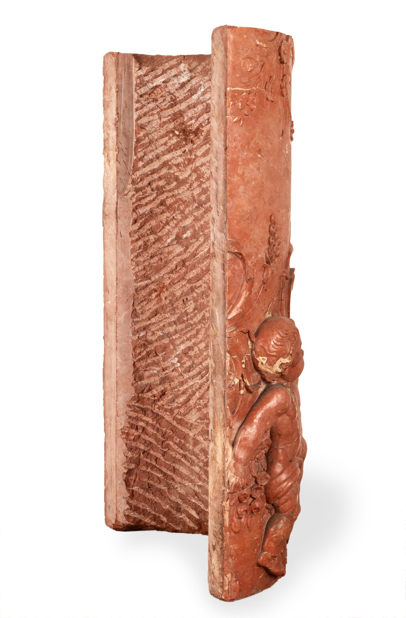 Marmo rosso di Verona cm 111x55x26 Scolpita a bassorilievo con putti e tralcio floreale