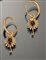 Coppia di orecchini in filo d’oro di forma circolare con pendente modellato a corolla ovale con al centro un granato (2)