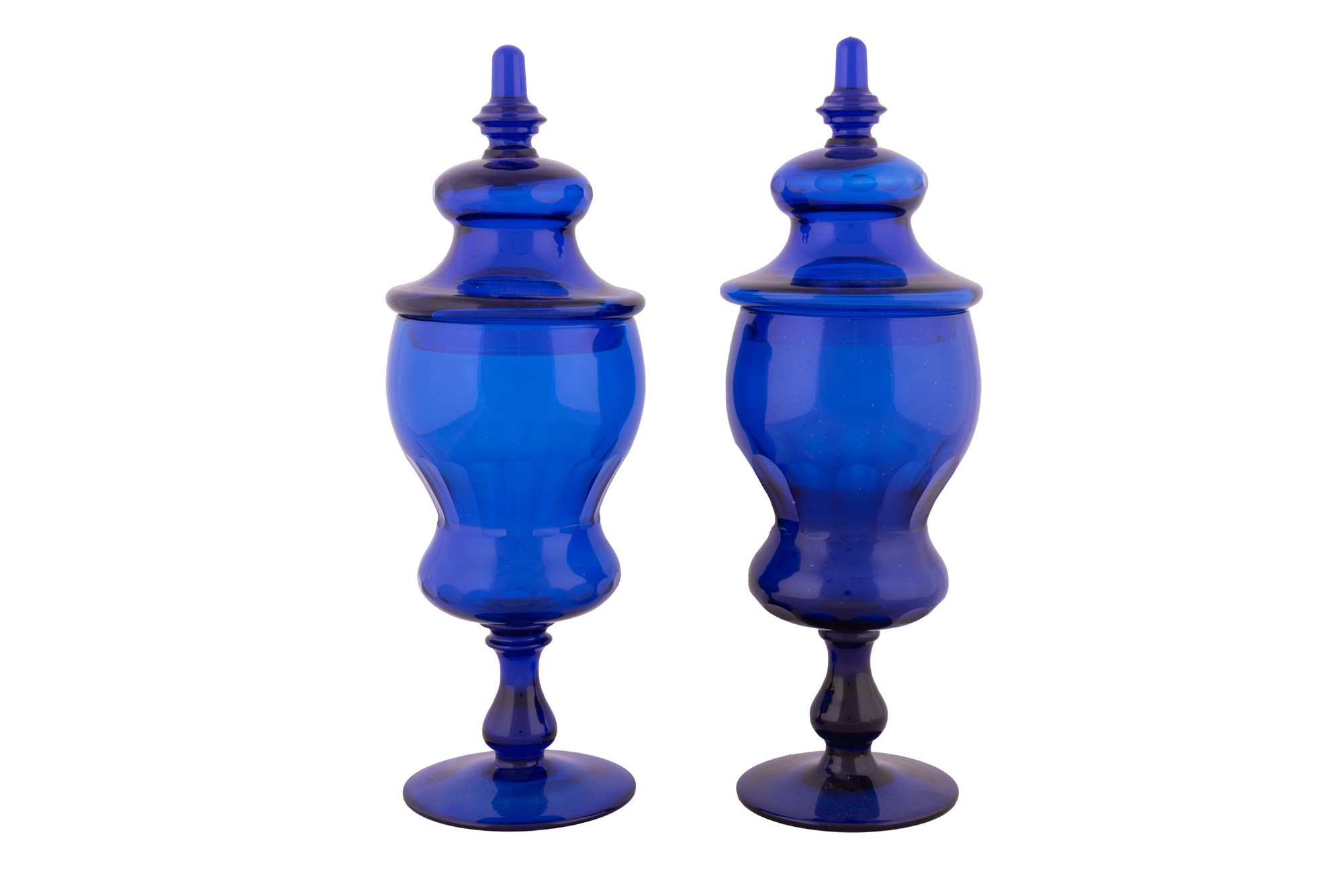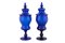 Coppia di vasi da farmacia con coperchio in vetro blu molato XX secolo