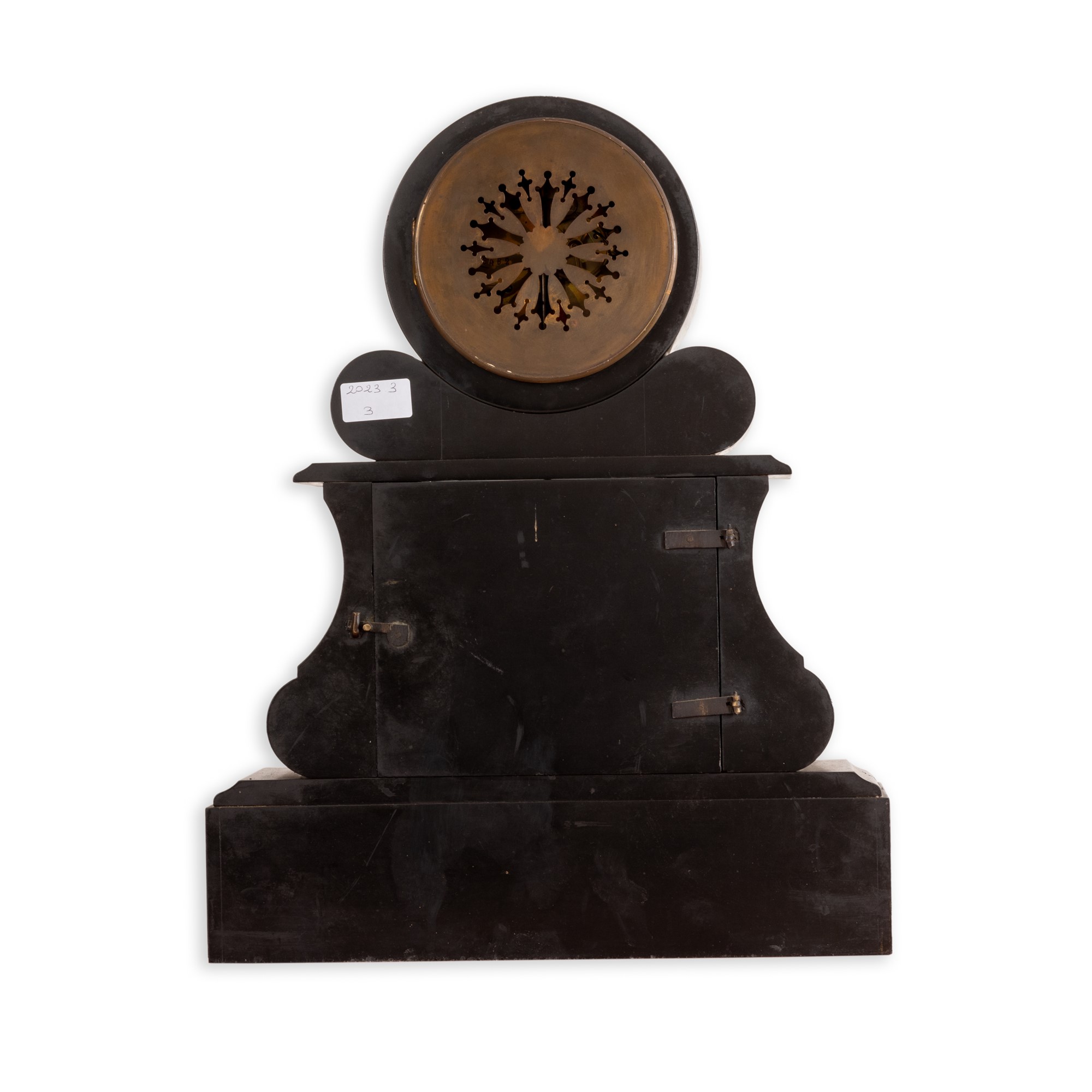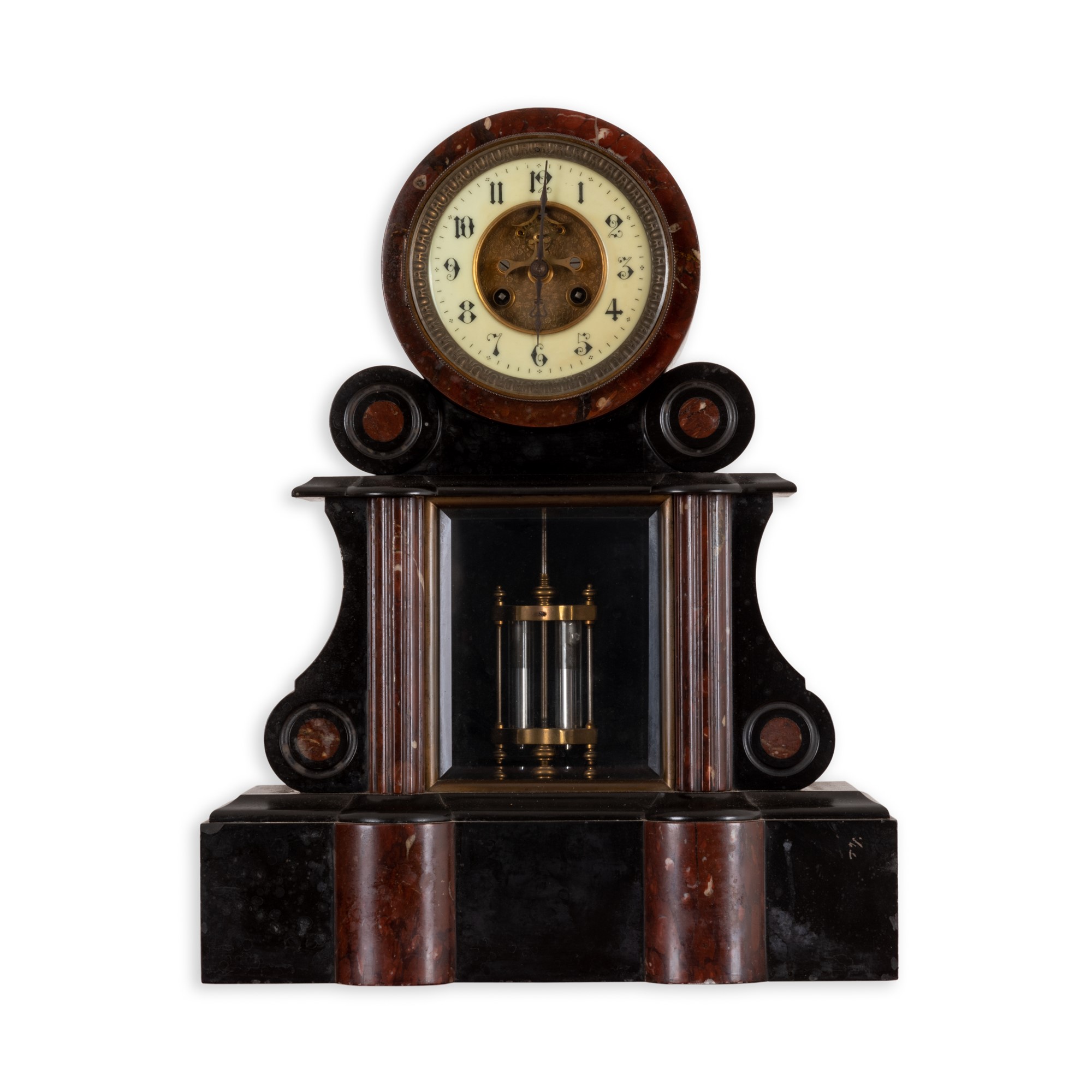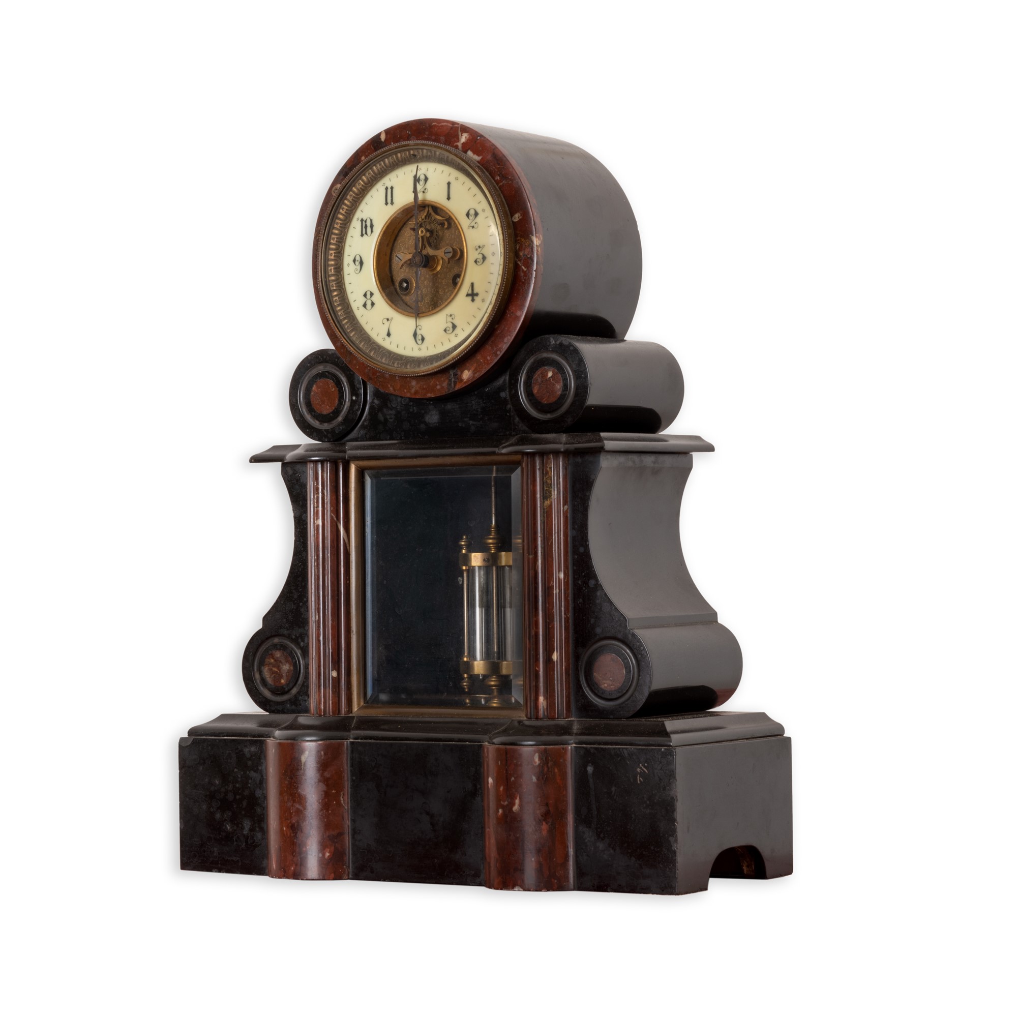 Orologio da camino Napoleone III in marmo nero di Belgio e rosso di Francia Vincentii & Cie medaille d'argent 1855