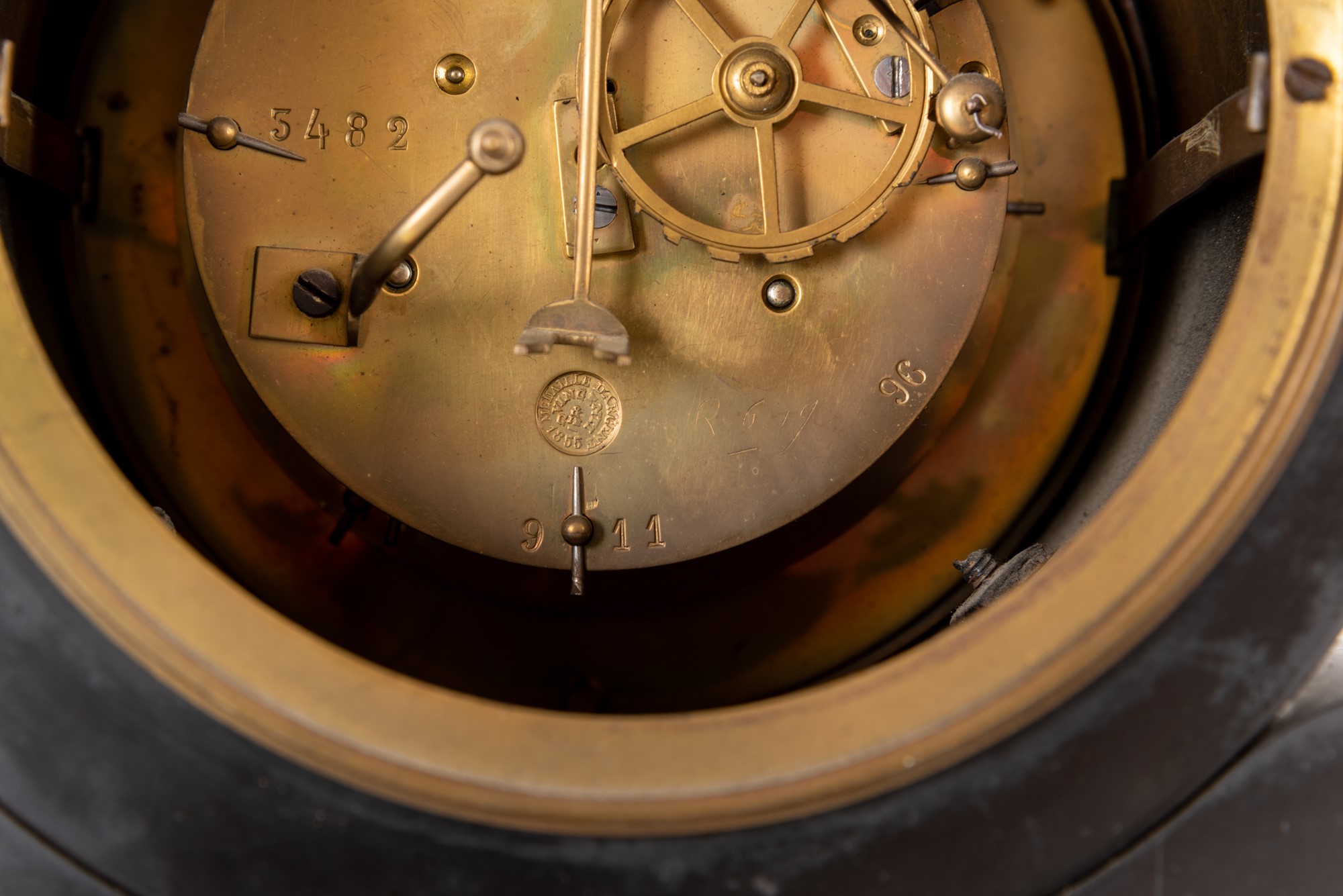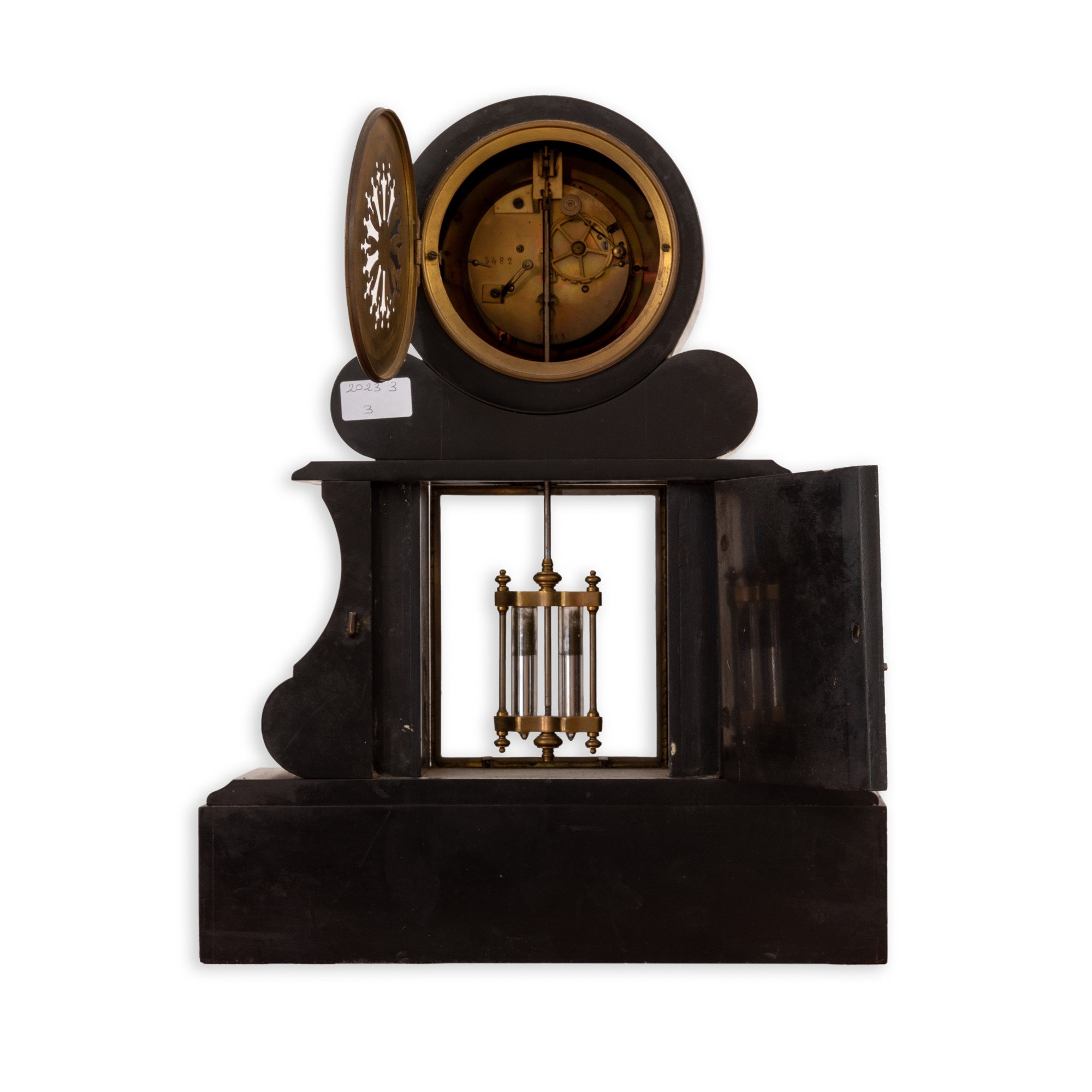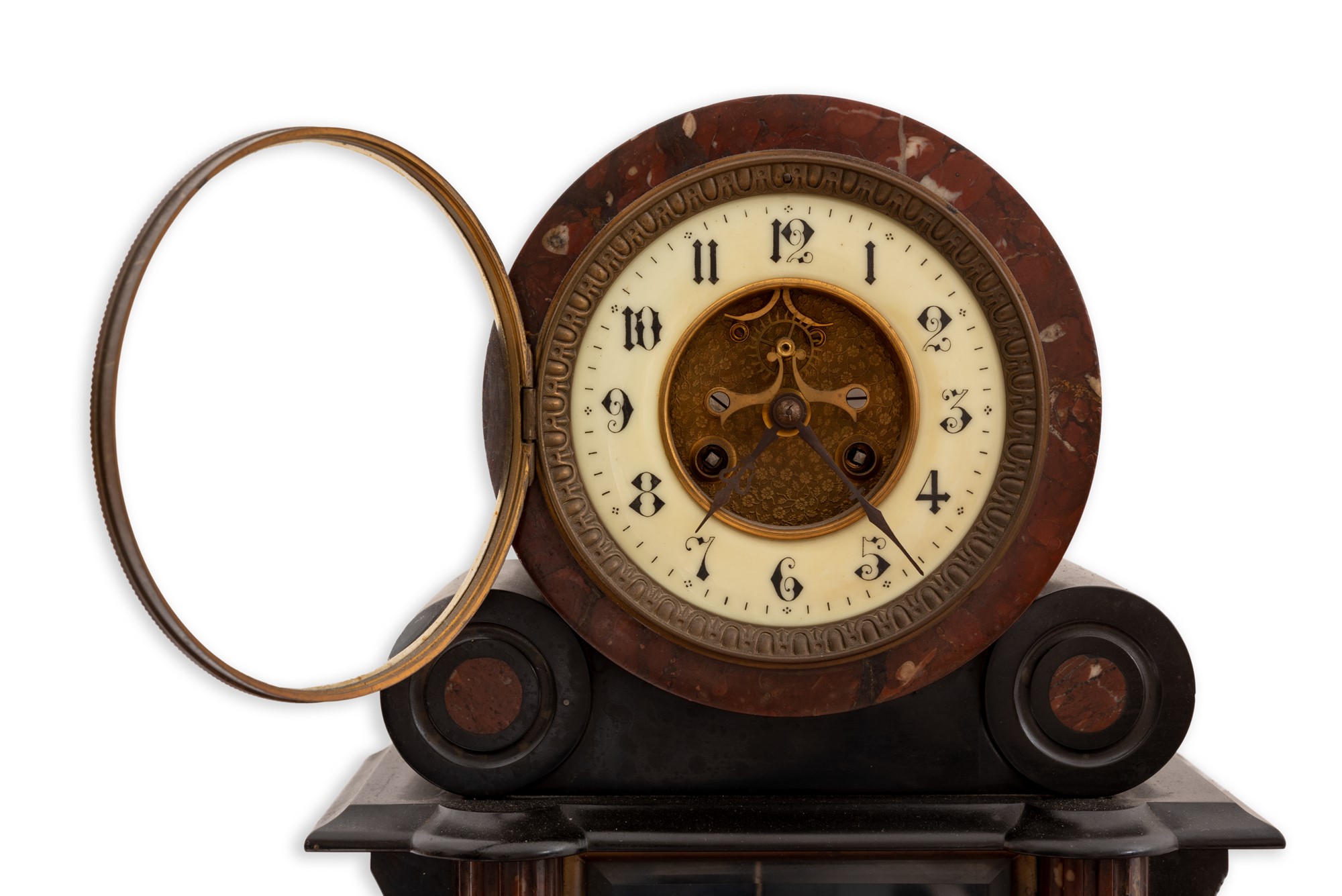 Orologio da camino Napoleone III in marmo nero di Belgio e rosso di Francia Vincentii & Cie medaille d'argent 1855