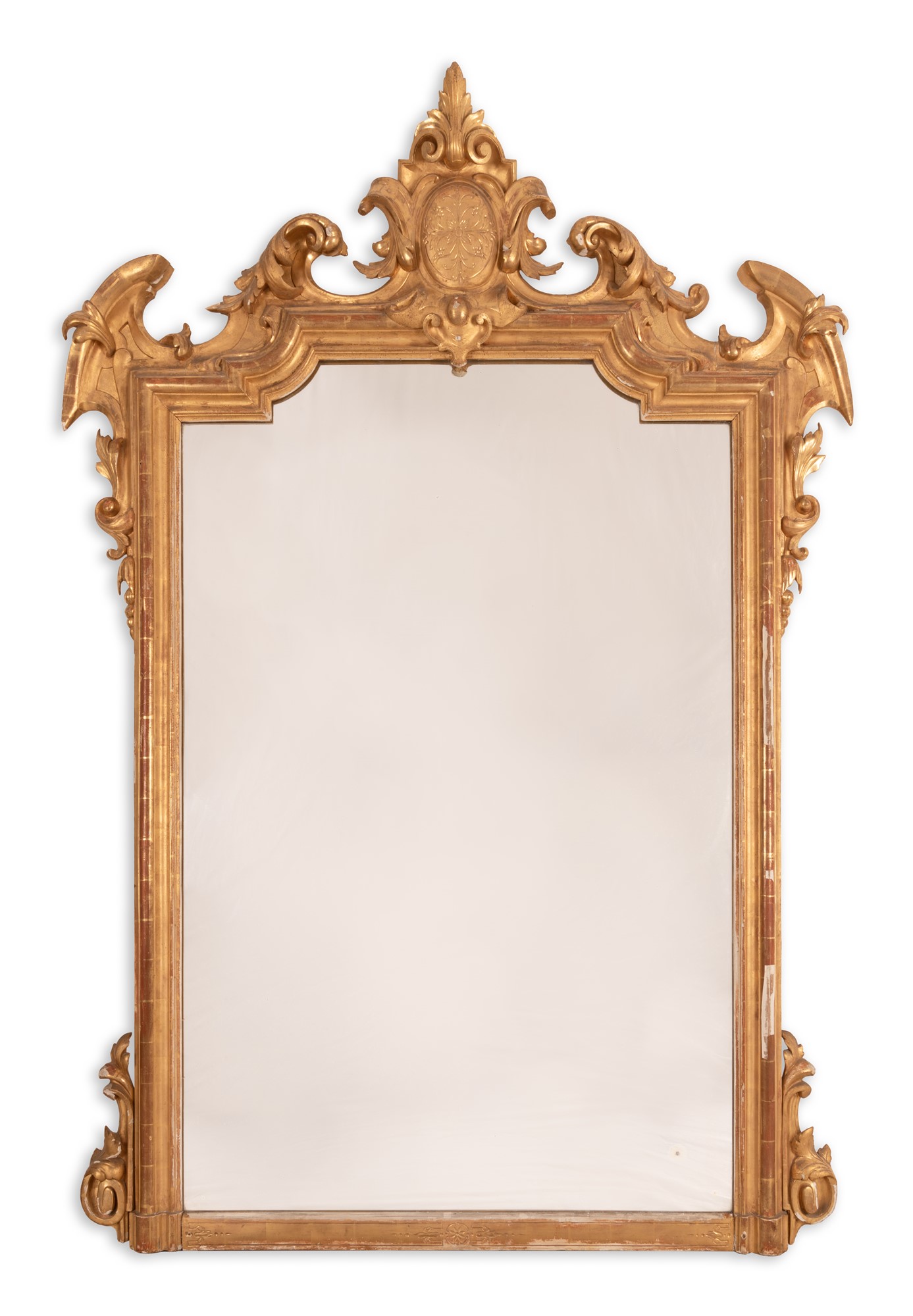 Specchiera in legno dorato con cimasa con stemma nobiliare