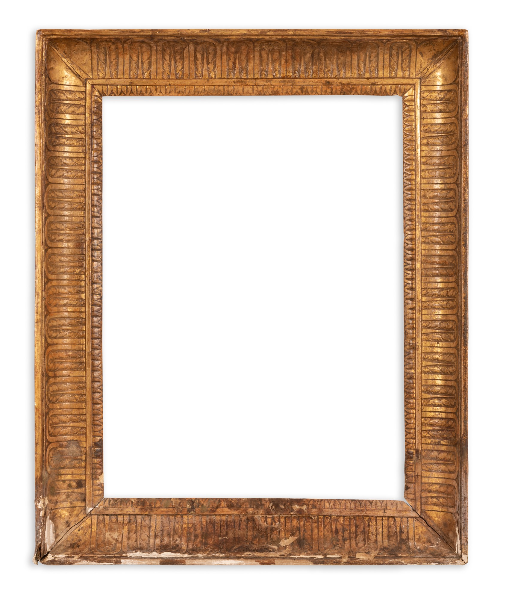 Cornice a guantiera in legno e stucchi dorati del XIX secolo con battuta a palmette