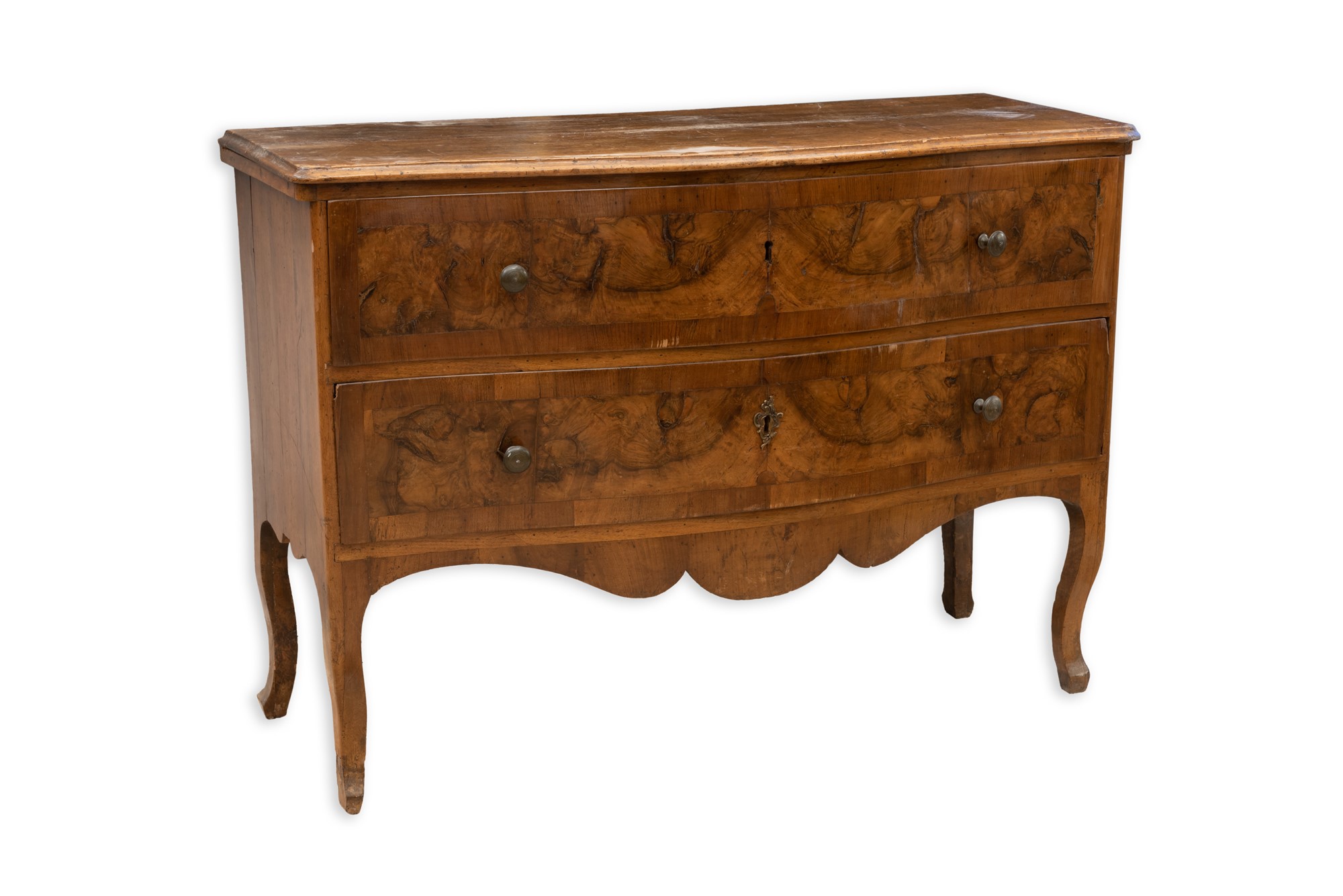 Comò a due cassetti in noce Luigi XV, Emilia/Veneto, prima metà del XVIII secolo
