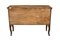 Piano in noce massello con becco di civetta. Fronte mosso a due cassetti lastronati nelle riserve in radica di ulivo. Gambe a sciabola raccordate da un grembiule sul fronte e sui fianchi