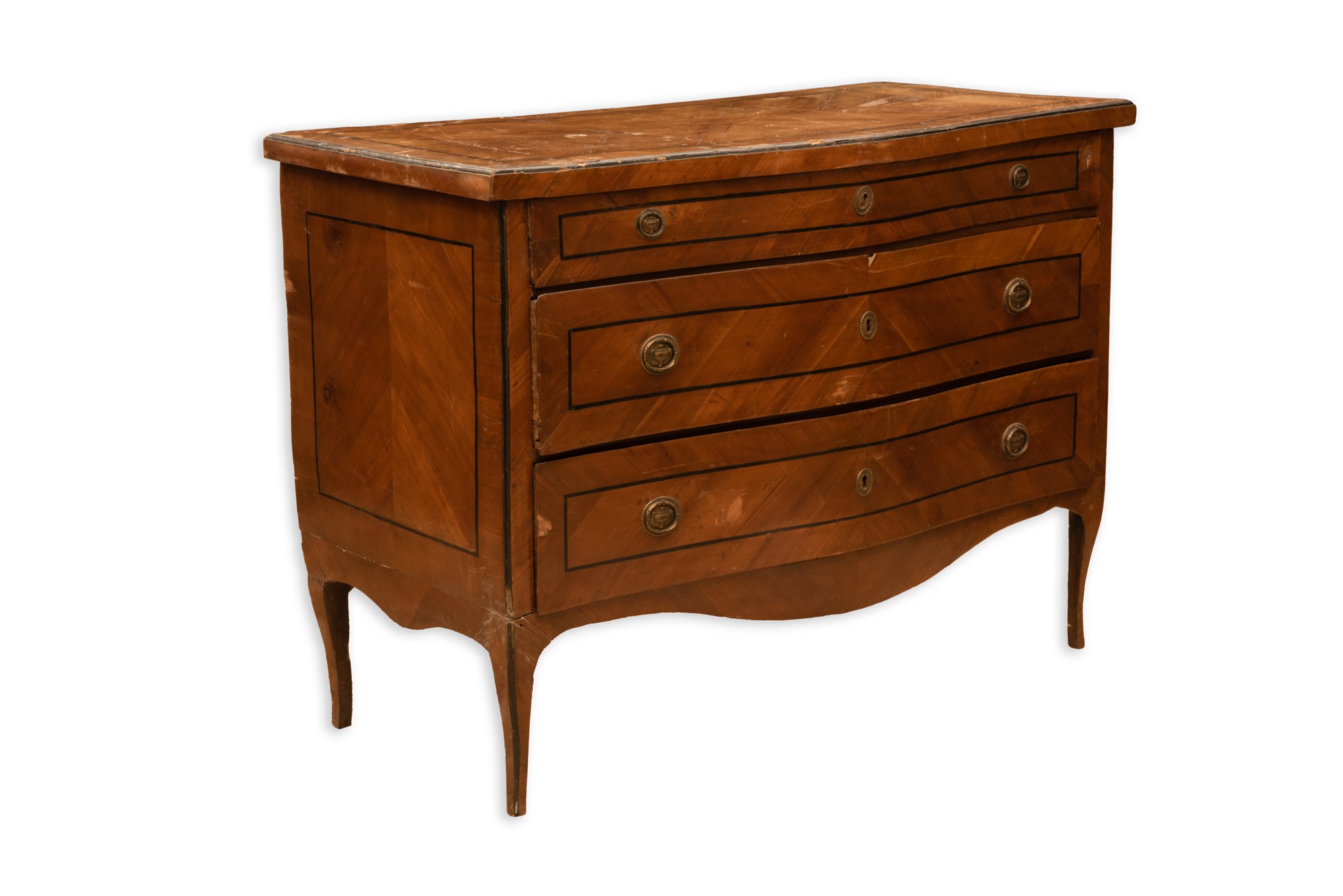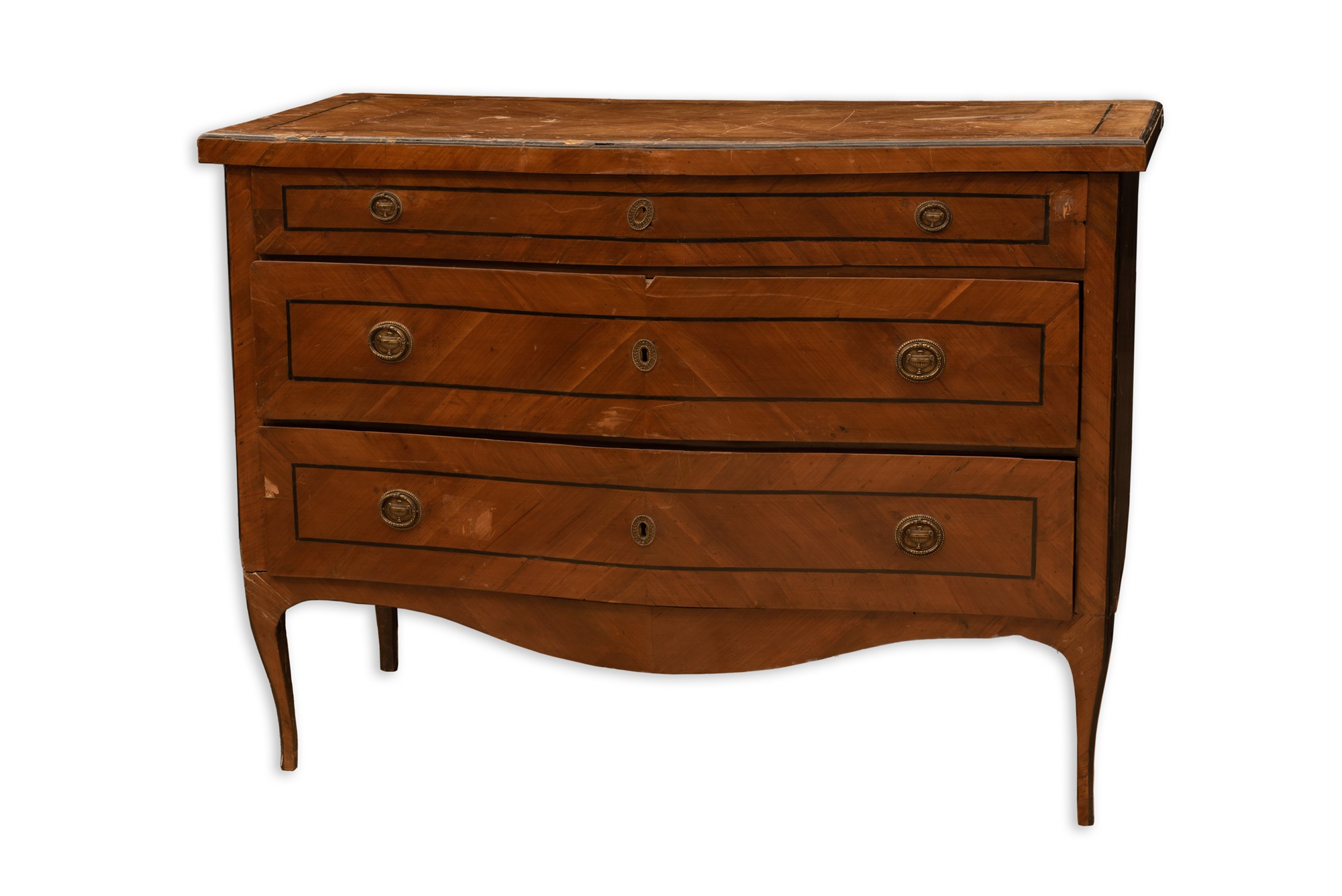 cm 94x128x60 Fronte mosso a tre cassetti lastronato a spina di pesce.
