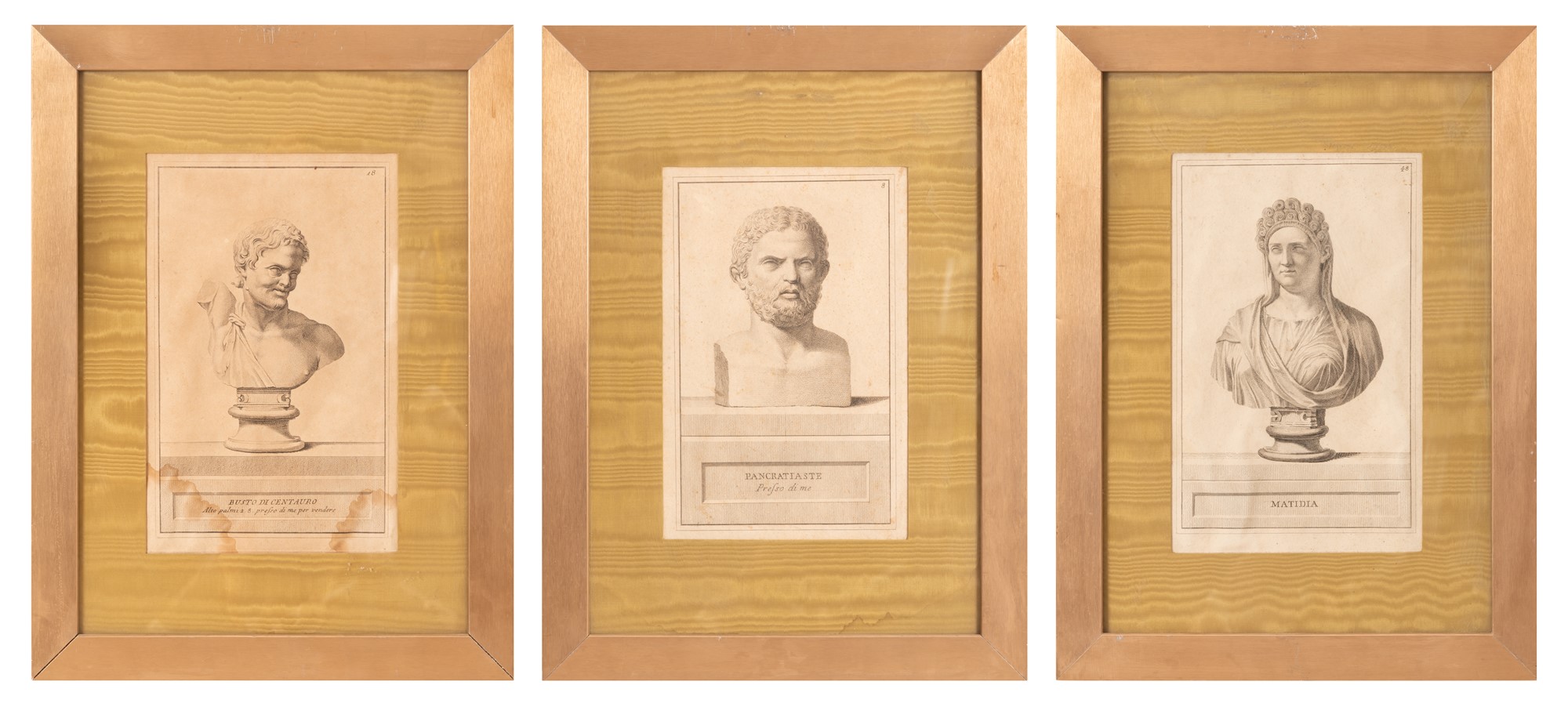 Lotti di tre incisioni raffiguranti ritratti Greci e Romani