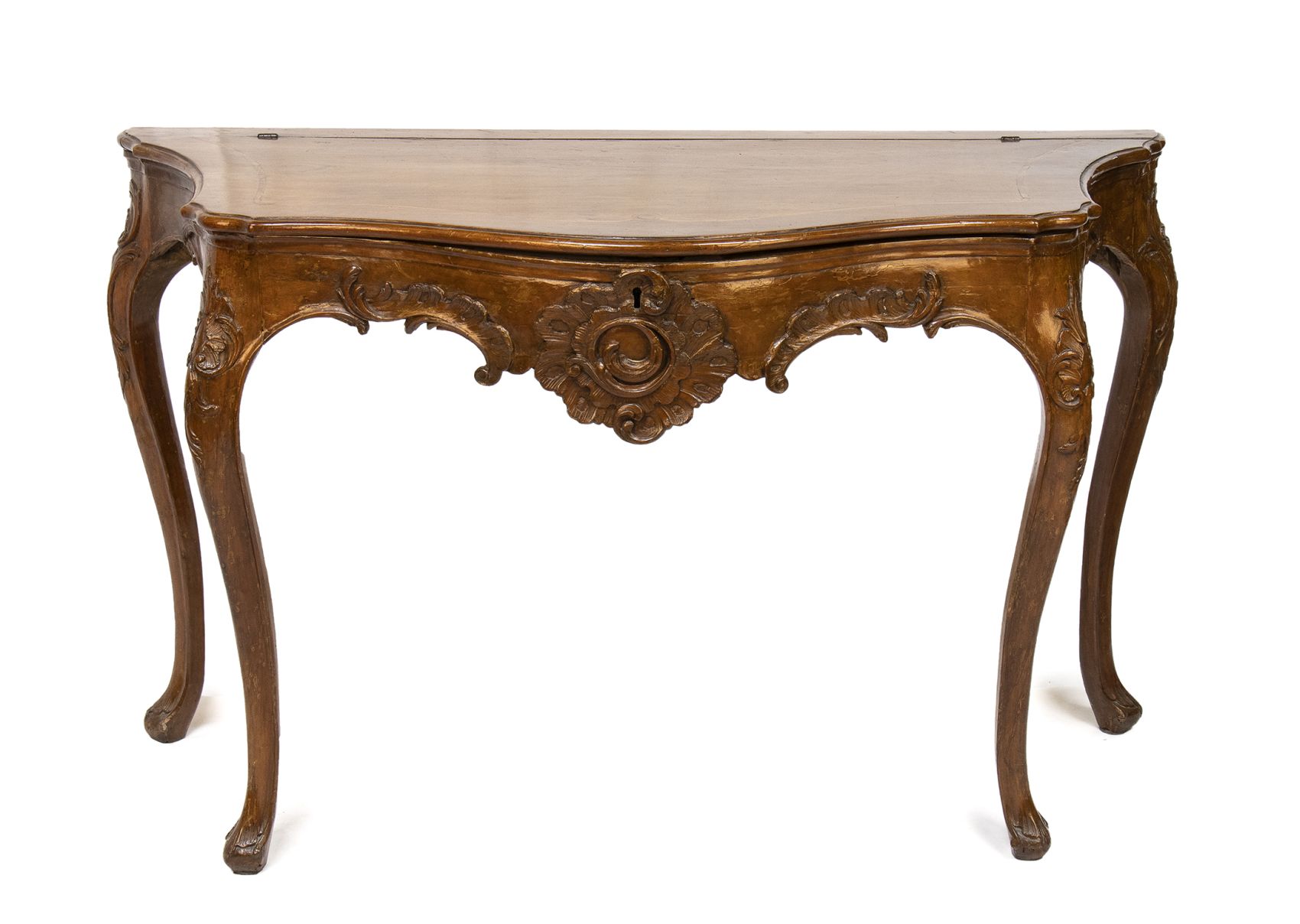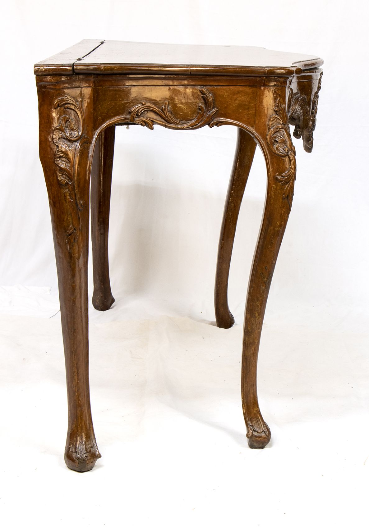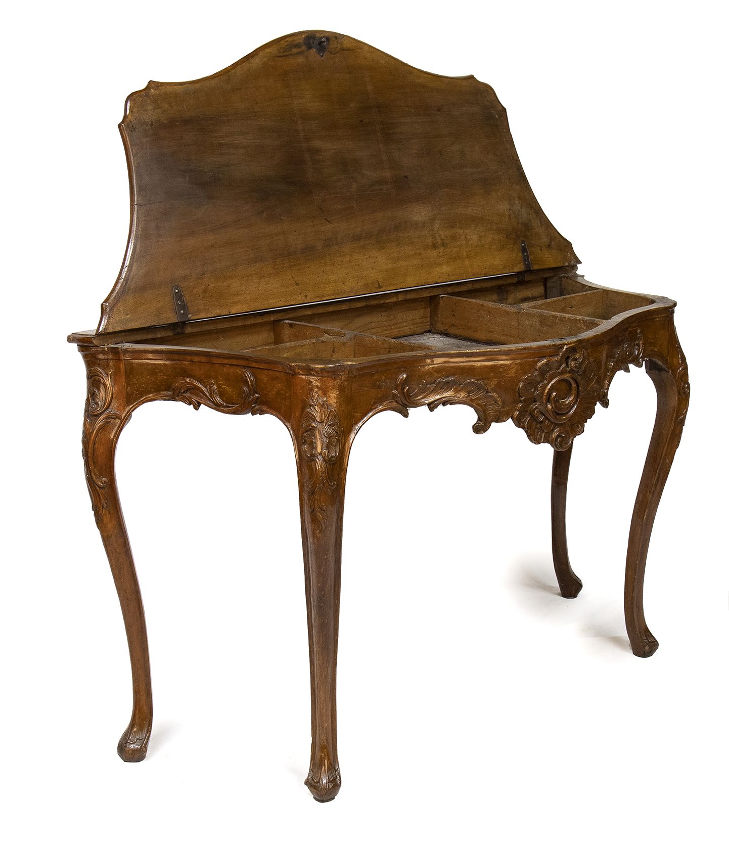 In legno di noce con piano ribaltabile mosse sul fronte con gambe cabriolet.