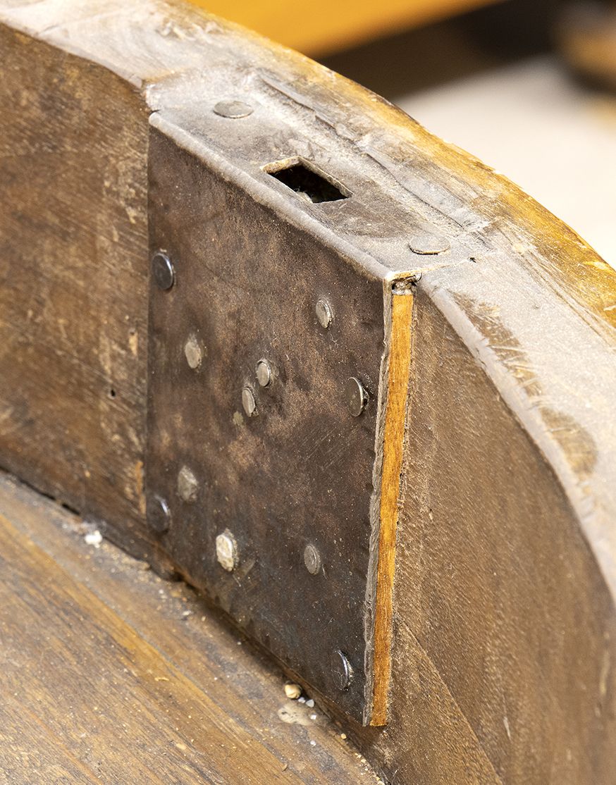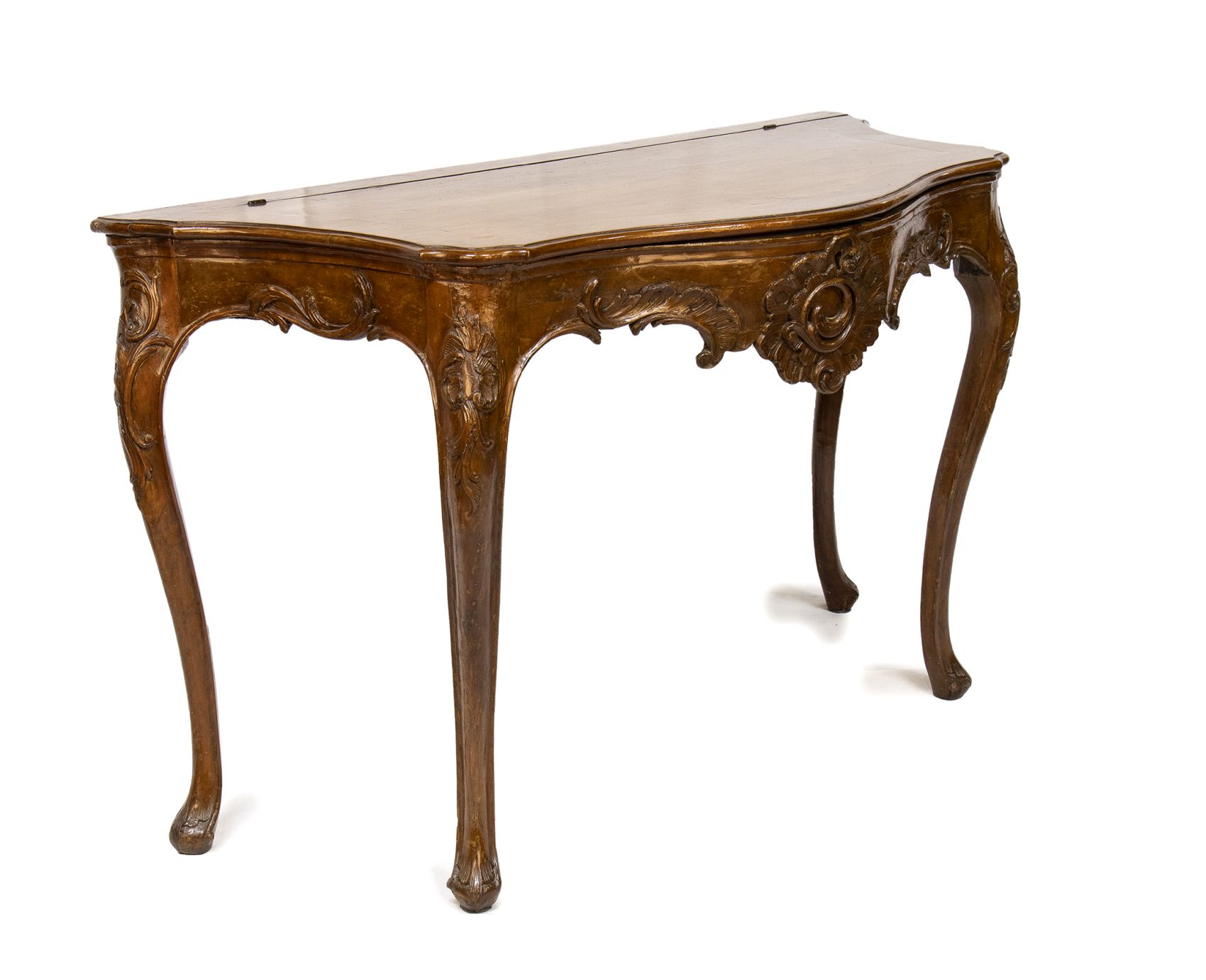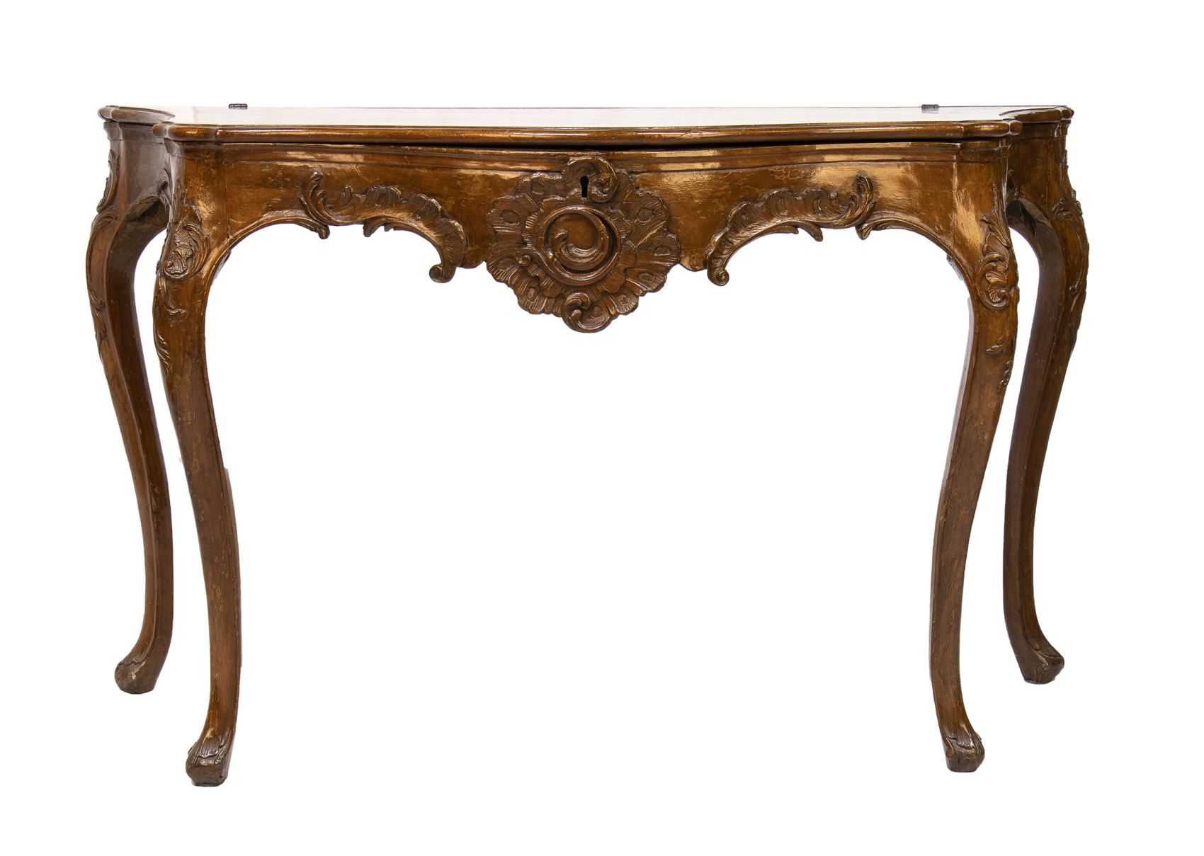 In legno di noce con piano ribaltabile mosse sul fronte con gambe cabriolet.