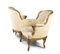 di manifattura parigina con struttura dorata. Questo genere di divano, che consiste in due sedili separati da una piccola consolle o bracciolo, permetteva di posizionarsi uno di fronte all’altro in modo da creare uno spazio privato e accogliente per due persone.