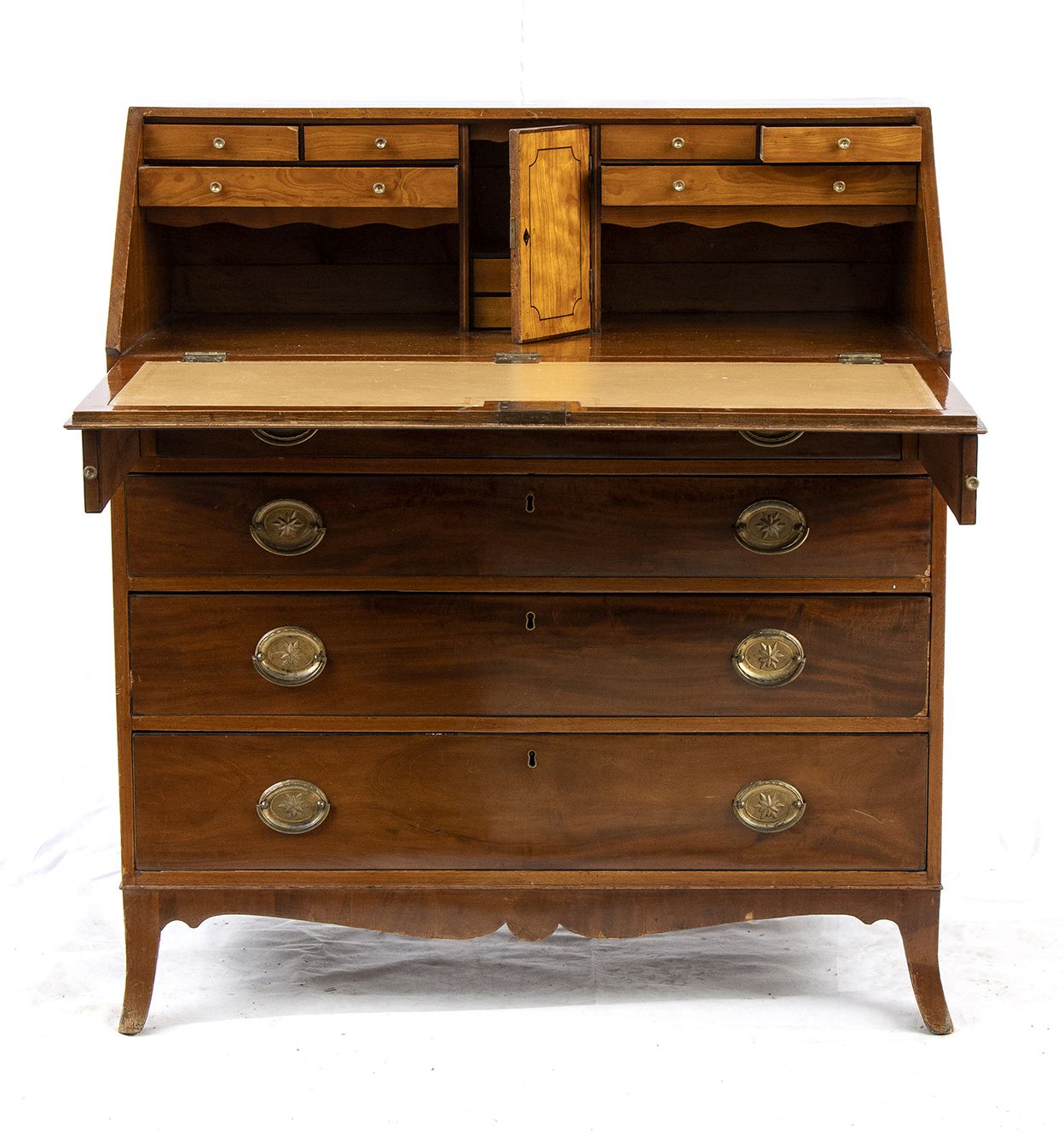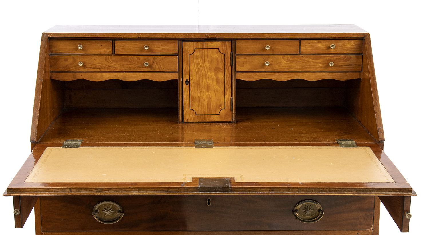 Pùprimo periodo vittoriano, in legno di mogano.Tre cassetti nella parte inferiore. Ribalta in ottime condizioni con cassetti interni.