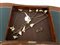 da centro, in legno di mogano con applicazioni in bronzo e piano in pelle.