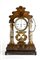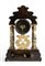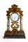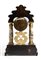 struttura architettonica a tempietto cosi composta: basamento rettangolare in palissandro ornato nella parte inferiore da un motivo a scanalature verticali, il fronte intarsiato con due teste d'aquila e con motivi floreali; nella parte mediana, affiancato da due colonne in marmo con basamenti e capitelli in legno dorato, un orologio con quadrante circolare in smalto bianco, numeri romani, sfere dorate e cornice dorata; regolatore a pendolo e suoneria delle ore, delle mezze ore e dei quarti su campana. la cimasa superiore, di forma sagomata, in palissandro intarsiato con due cornucopie e a motivi floreali, ornata da fiorellini in madrperla. All'interno del basamento è presente un carillon a due melodie, ripesttivamente di Verdi e Doninzetti, cosi come riportato sul cartiglio posto nella parte interna dello sportello posteriore.