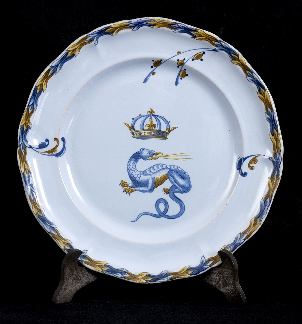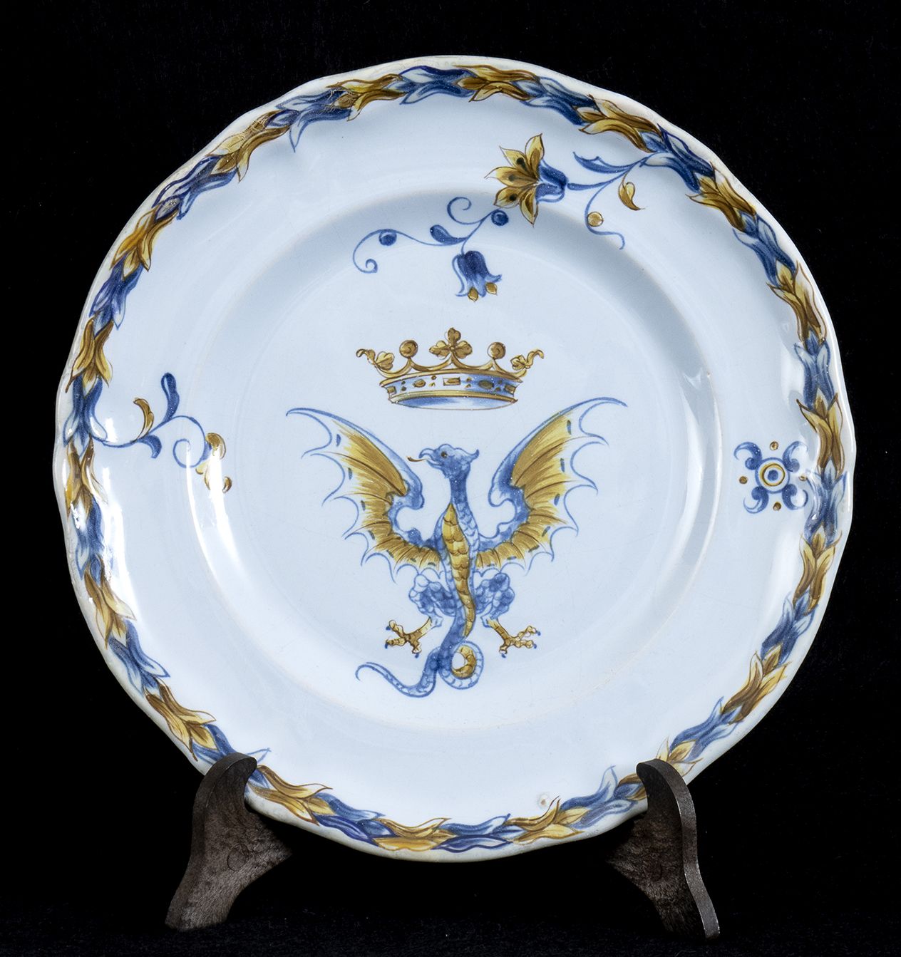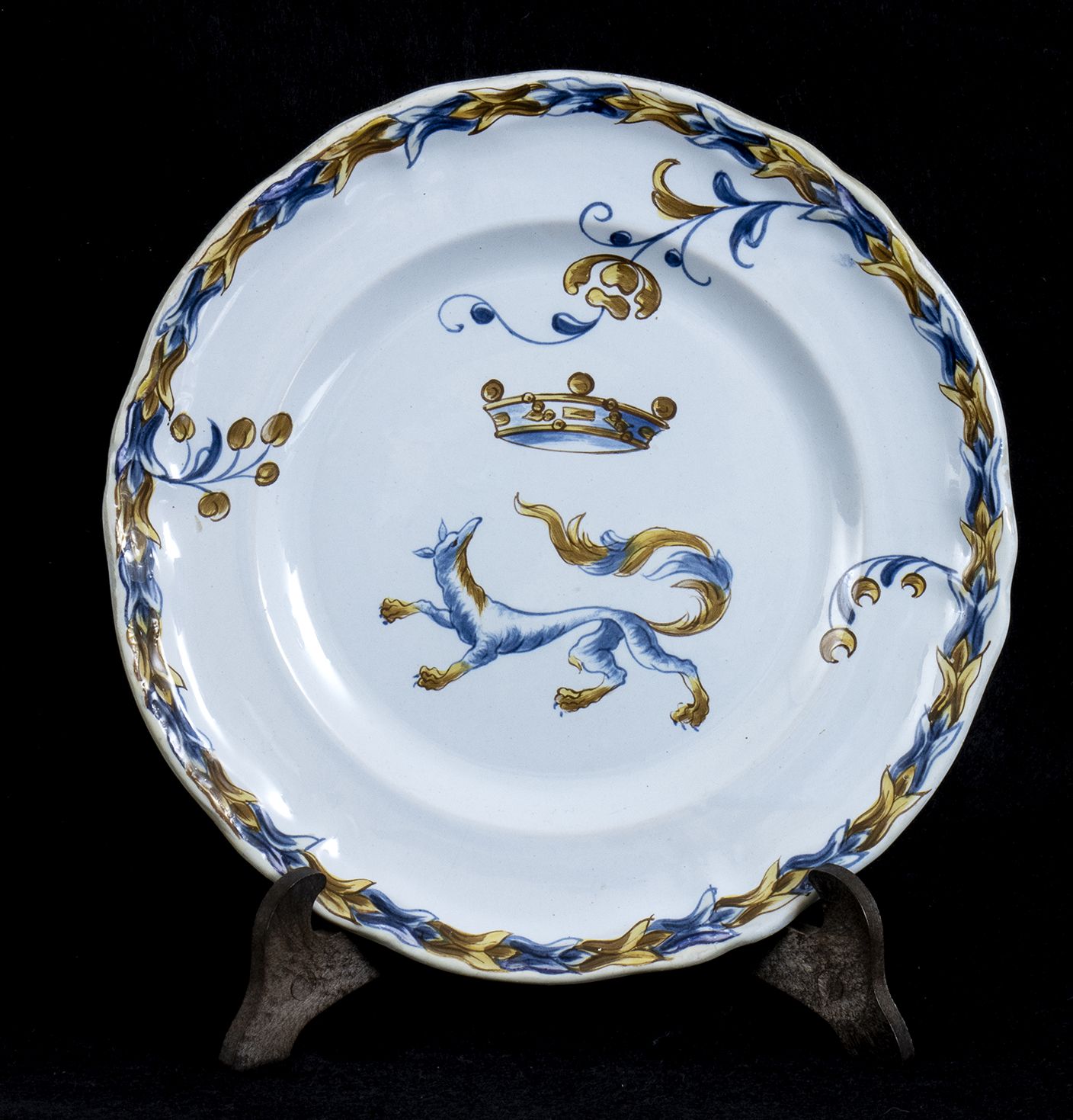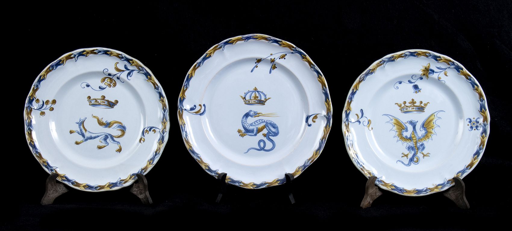decorati con animali incoronati, firmati sul retro di ogni piatto.