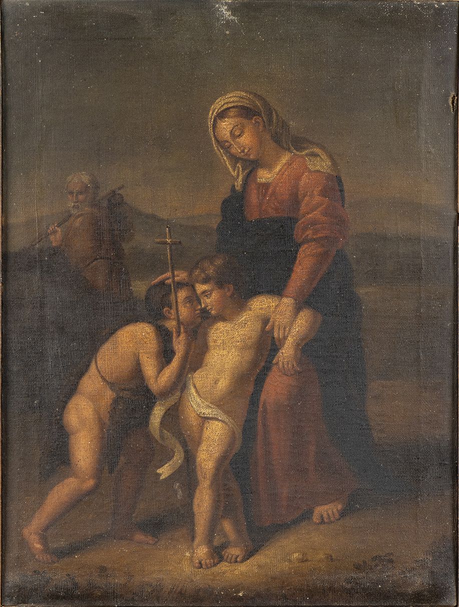 olio su tela, raffigurante la vita di Gesù fanciullo con Madonna e San Giovannino. Altezza x larghezza tela 54 x 41 cm