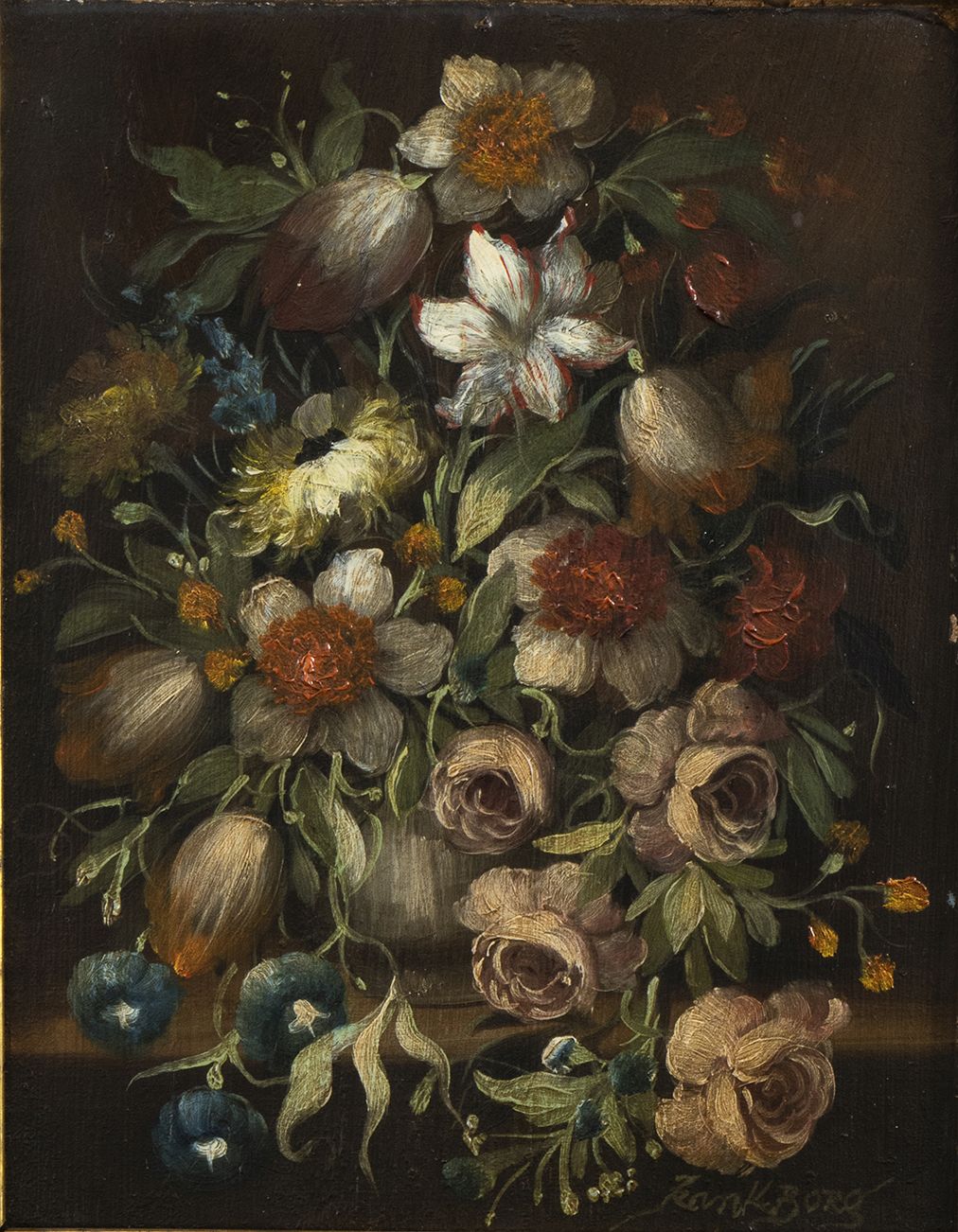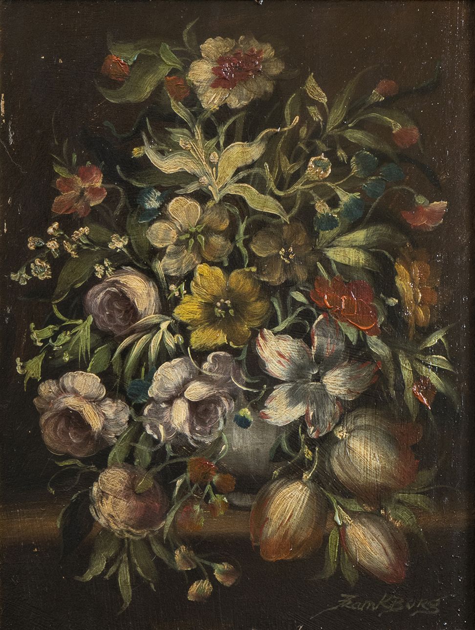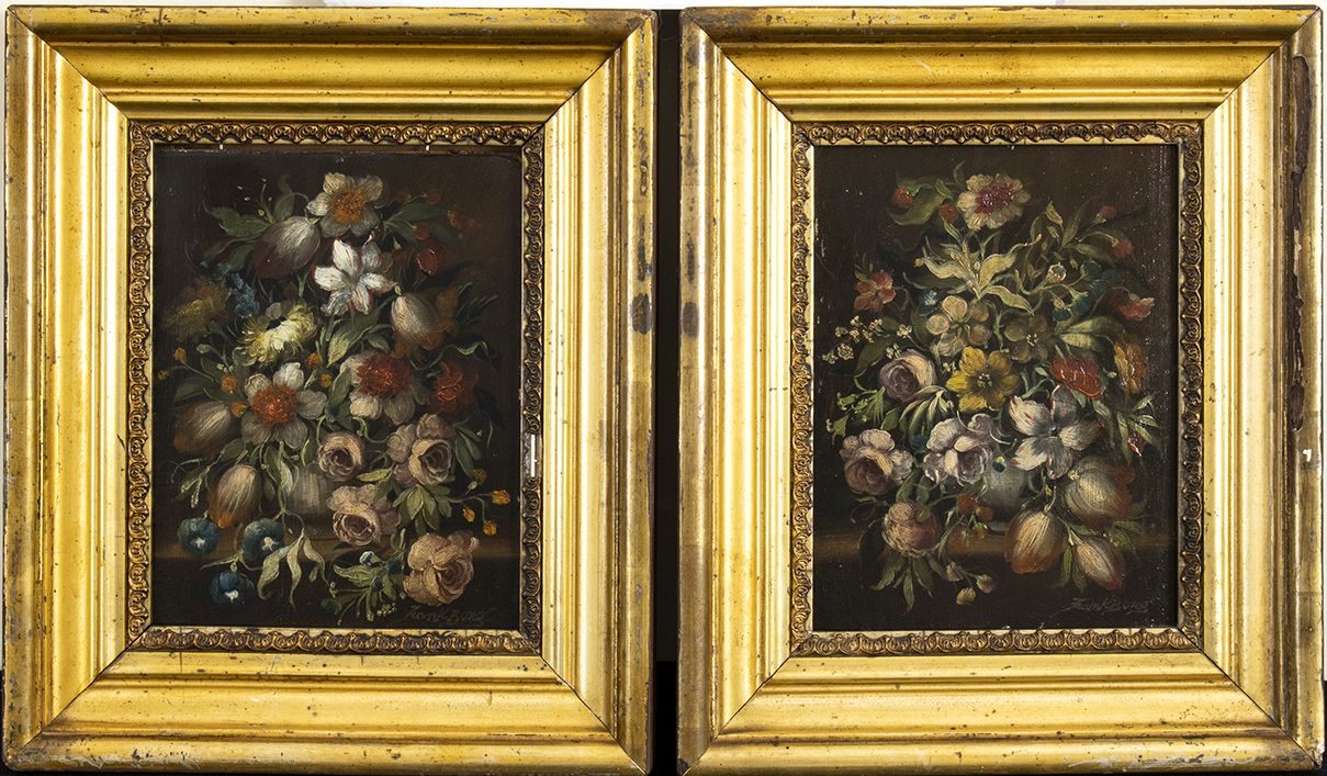 olio su tavola raffiguranti vasi di fiori.