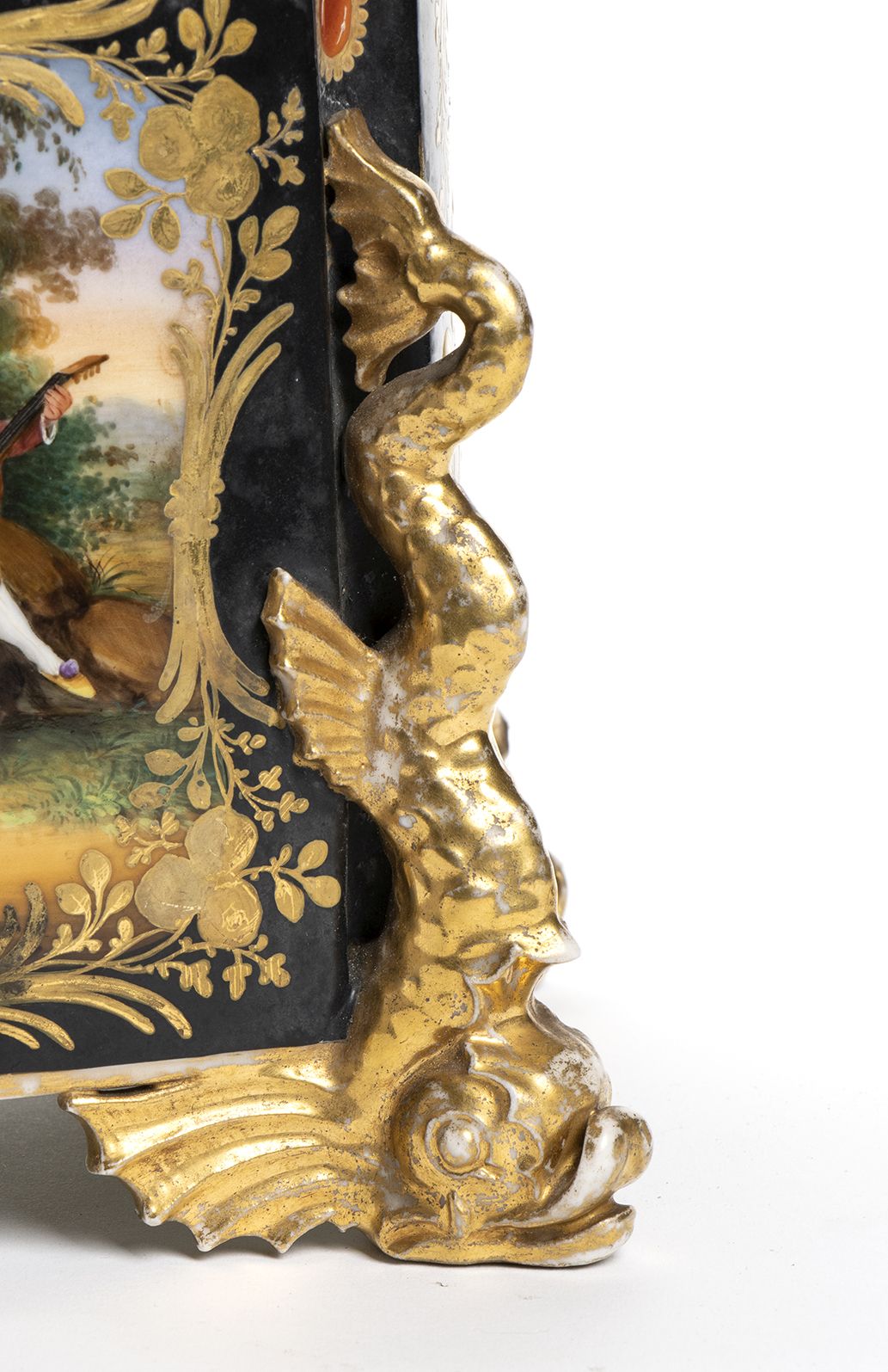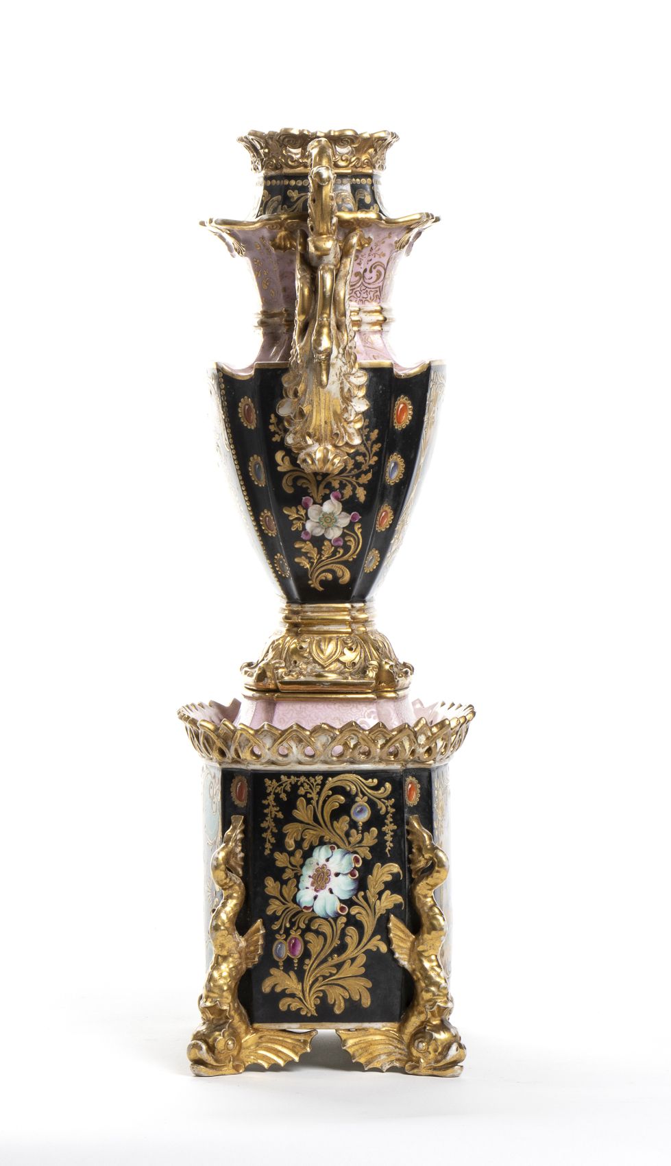 firmato da Jacob Petit (1797-1868), noto ceramista parigino. Petit si unì alla Manufacture de Sèvres nel 1822 dopo aver studiato disegno da autodidatta e aver lavorato con Antoine Jaen Gros. Appassionato di arti decorative, Petit pubblicò una raccolta di decorazioni per interni che ebbe molto successo. La sua produzione artistica comprende prevalentemente oggetti decorativi con colori sgargianti e un gusto eclettico che accosta repertori decorativi provenienti da diverse epoche e aree geografiche.