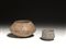 Olla con breve orlo rettilineo, lenticolare, piede a disco e coppetta di forma troncoconica con piede ad anello, decorate a motivi geometrici (2)