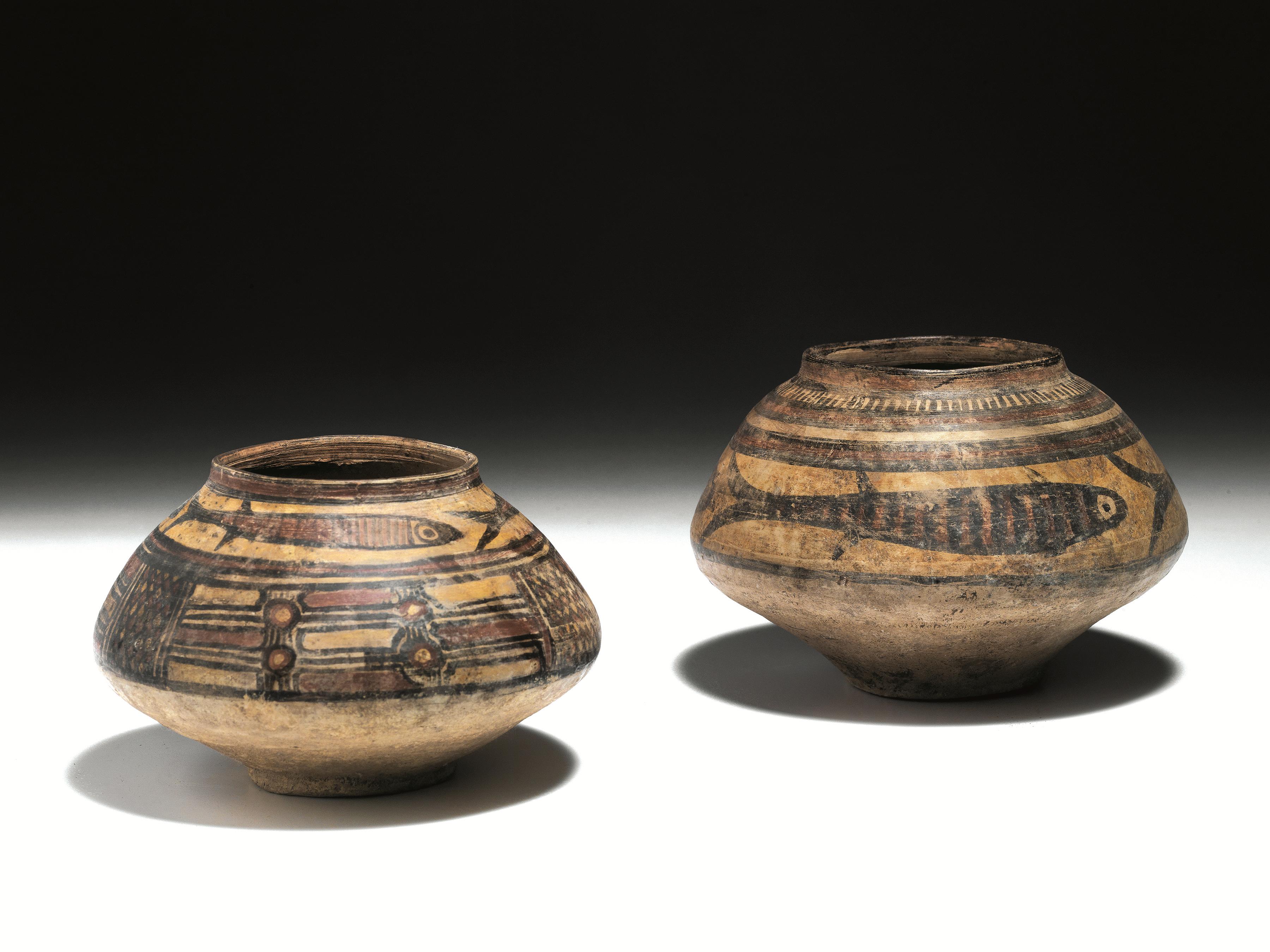 Decorazione: sulla spalla pesci e motivi geometrici tra fasce in bruno e paonazzo