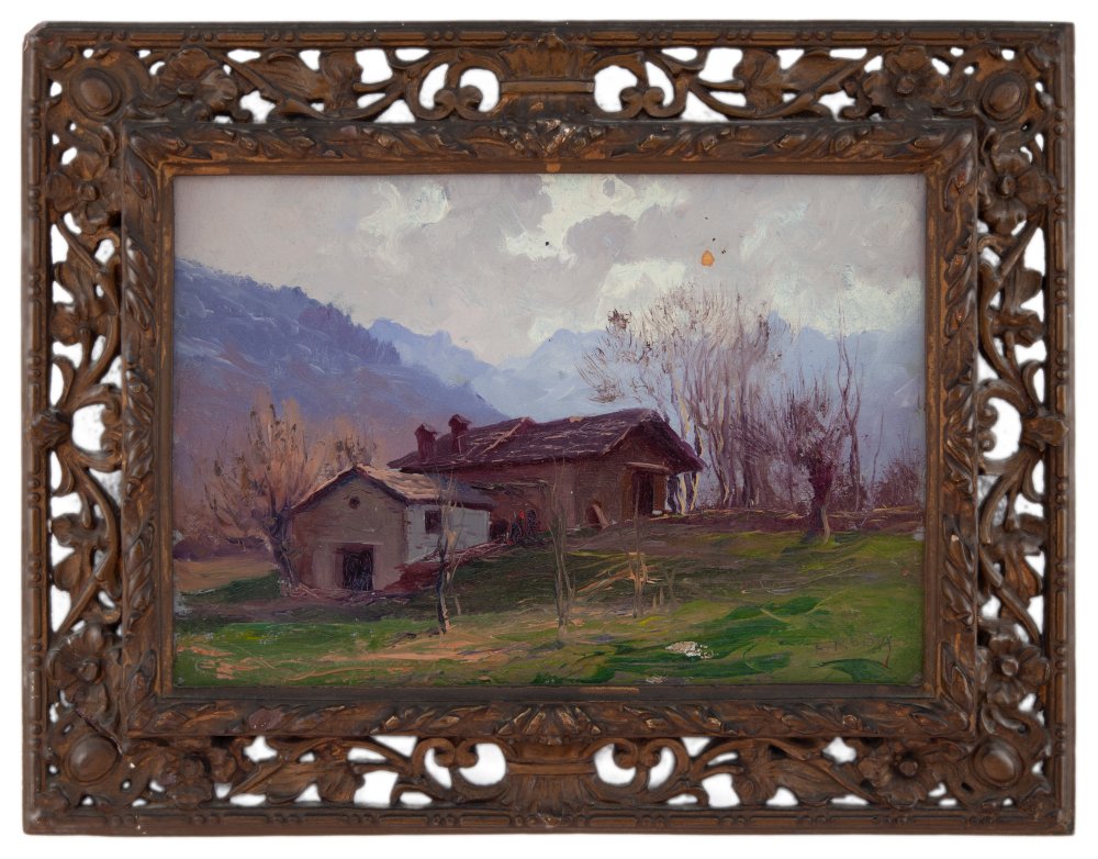 Leonardo Roda Racconigi (CN) 1868 - Torino 1933 Casolari di montagna Olio su tavola cm 22x32