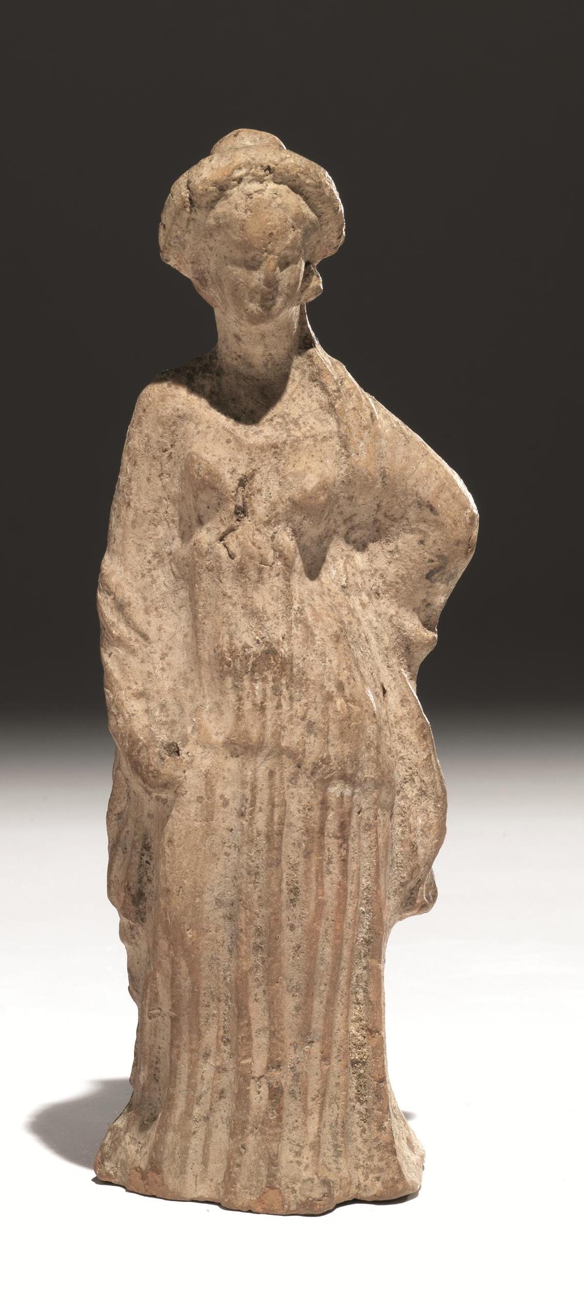 Statuetta femminile, cosiddetta Tanagrina Materia e tecnica: argilla...