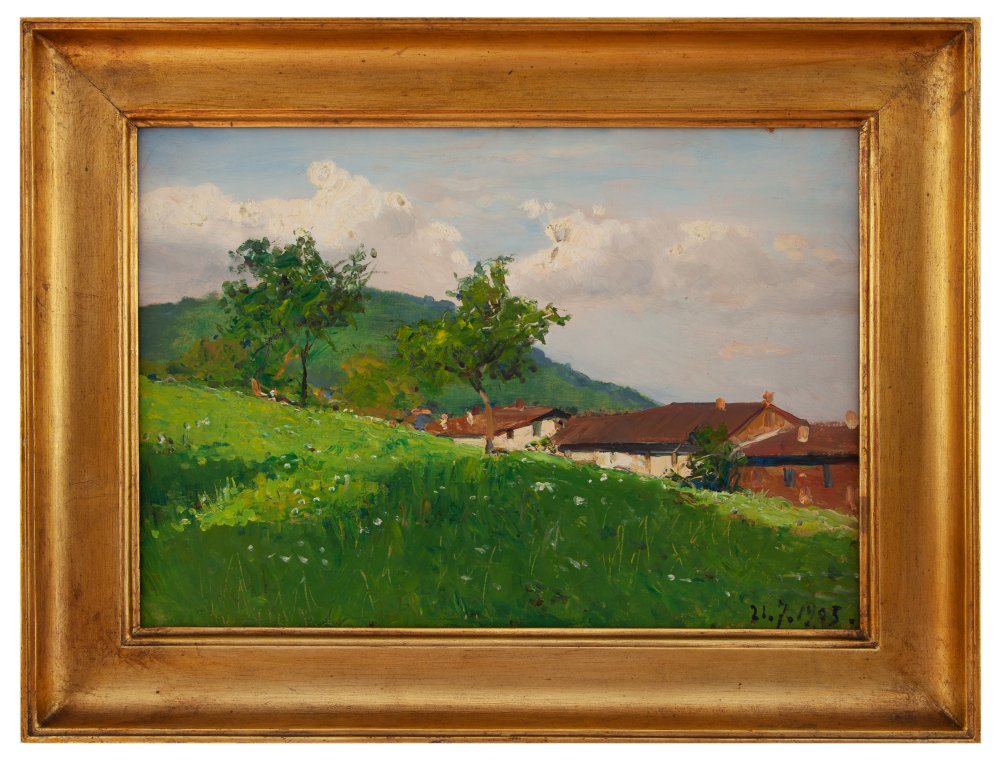 Lorenzo Delleani Pollone 1840 – Torino 1908 Estate in montagna Olio su tavola cm 30,5x43,5