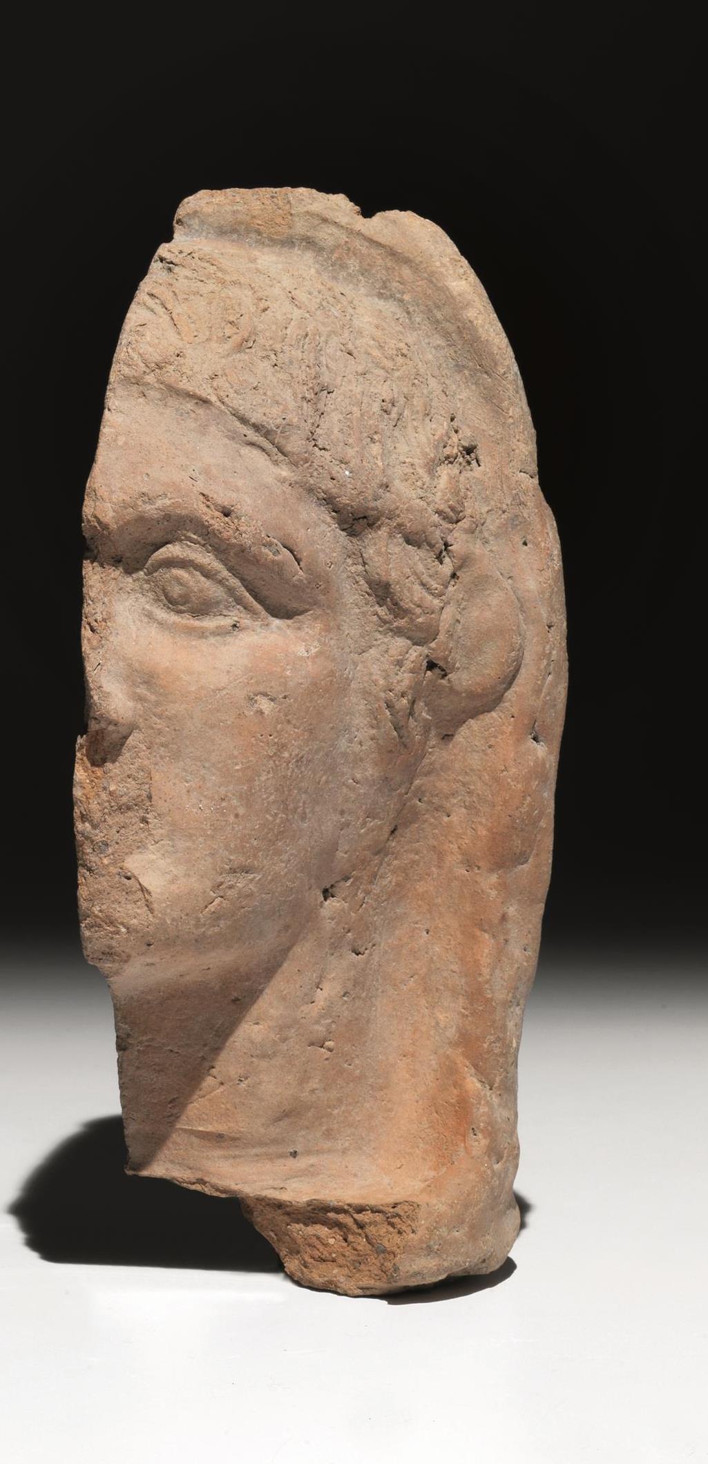 Testa fittile maschile votivaMateria e tecnica: impasto rosato, ingubbiatura...