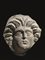 Testa femminile in posizione frontale stilizzato con capigliatura resa a ciocche che formano un ventaglio intorno al volto; arcate orbitali fortemente accennate, occhi amigdaloidi con indicazioni di palpebra e pupilla, naso piccolo e rettilineo, bocca sottile con labbra chiuse, mento arrotondato, parte posteriore non lavorata