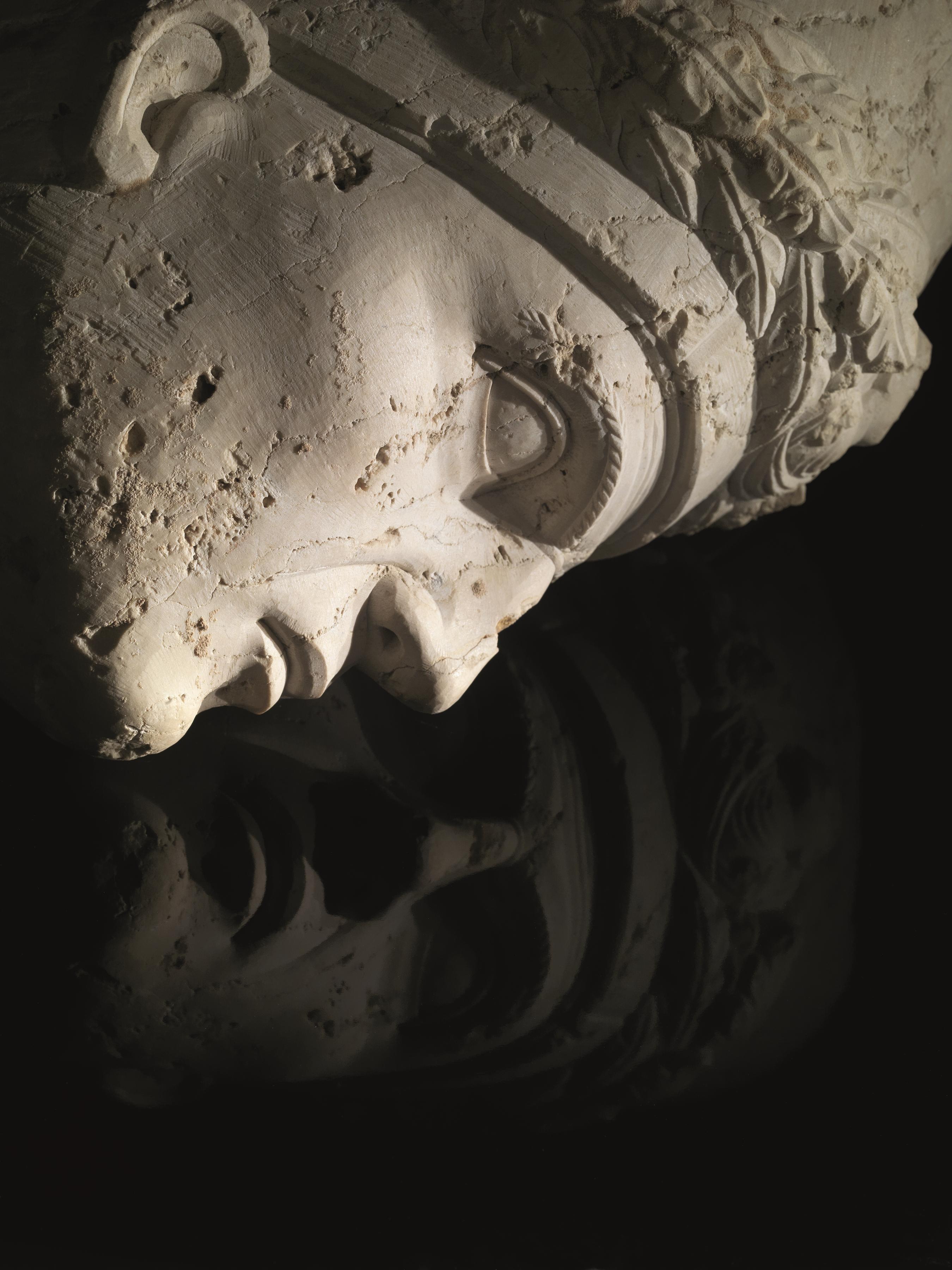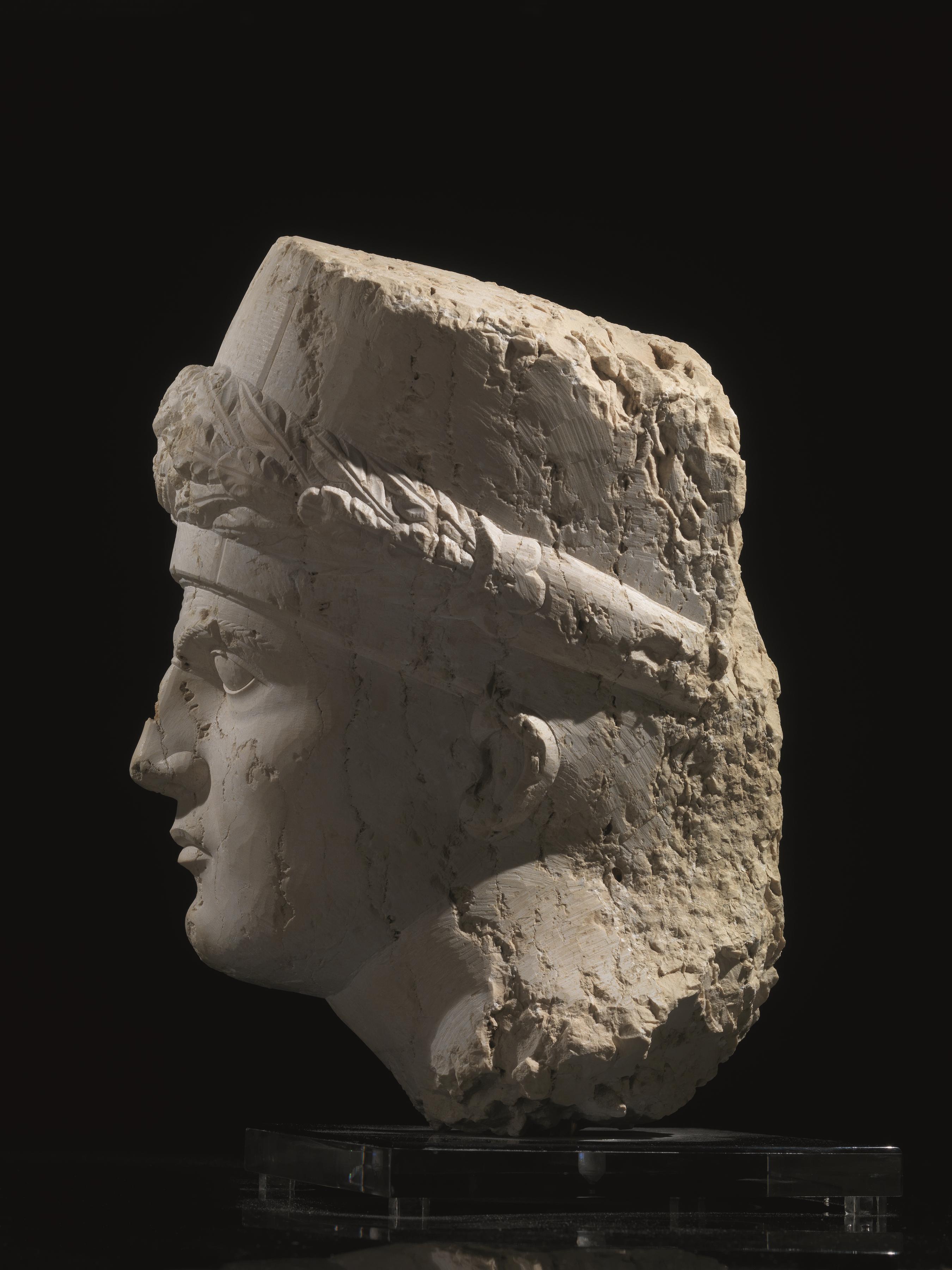 Grande testa di sacerdote di BelMateria e tecnica: calcare bianco con...