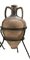 Labbro leggermente svasato, collo cilindrico, spalla obliqua, corpo piriforme, fondo piatto, anse a nastro costolate impostate dal collo alla spalla; è completa di sostegno in ferro battuto.