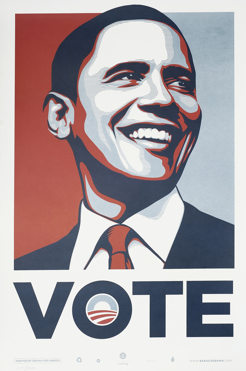 Shepard Fairey (Charleston, 1970) OBAMA-VOTE, 2008 Stampa Offset, mm. 975x632; es. 4242/5000 numerata in basso a sinistra.