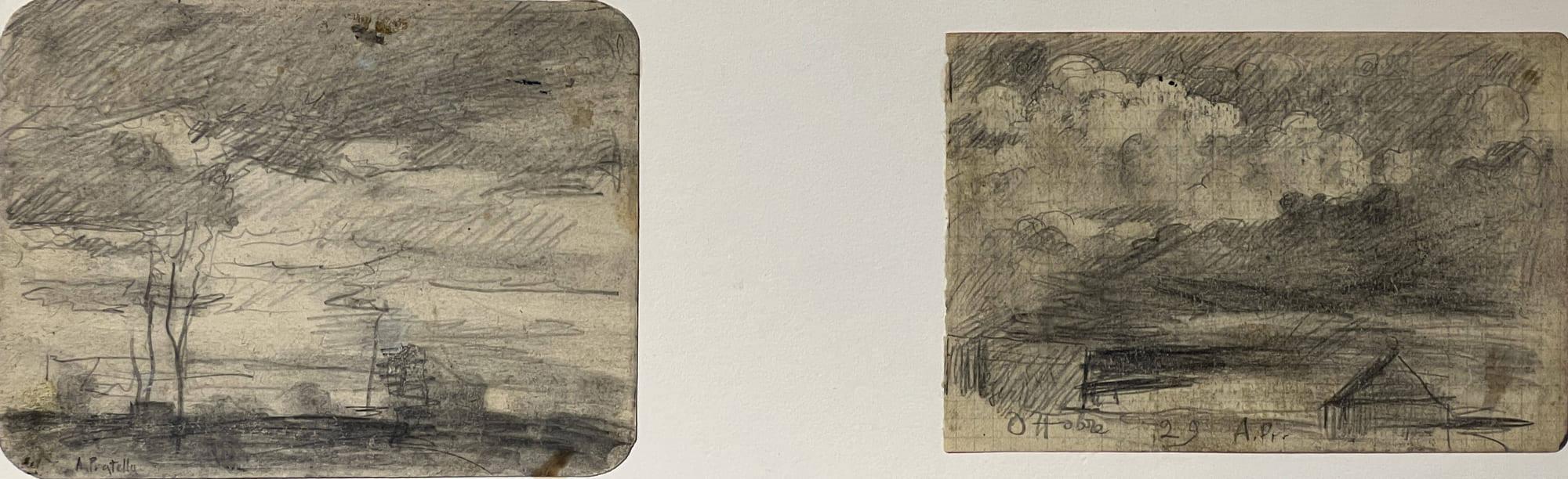 2. Cielo temporalesco, matita su carta, firma: siglato in basso al centro, misure: cm 9 x 13,5