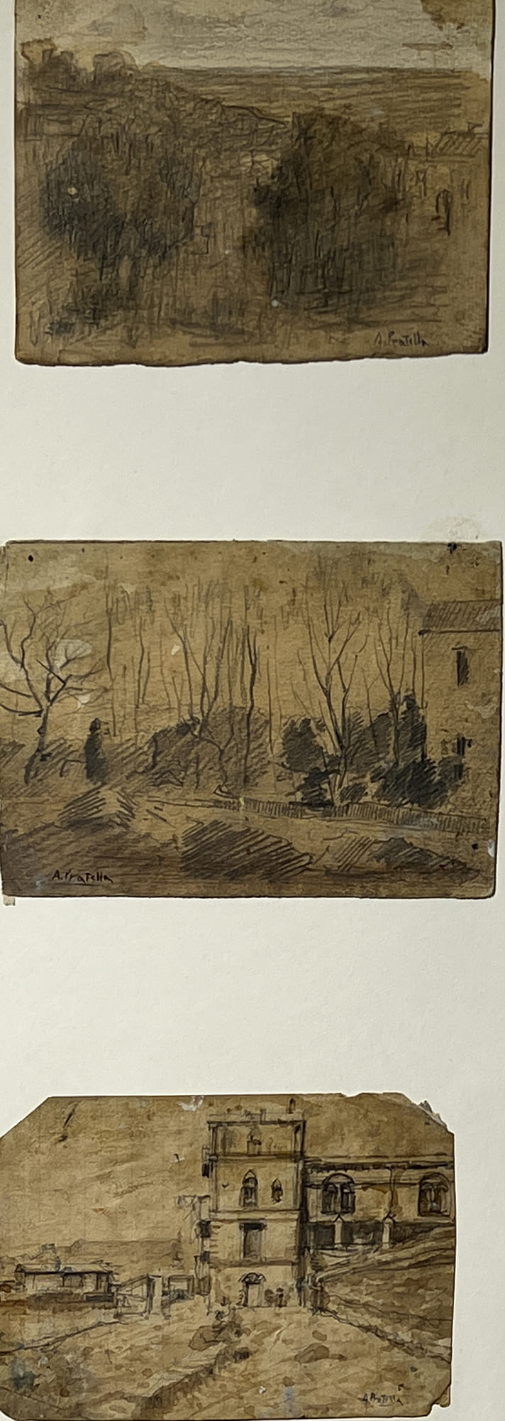 1. Appunto di paesaggio, tecnica mista su carta, firma: in basso a destra, misure: cm 9 x 12