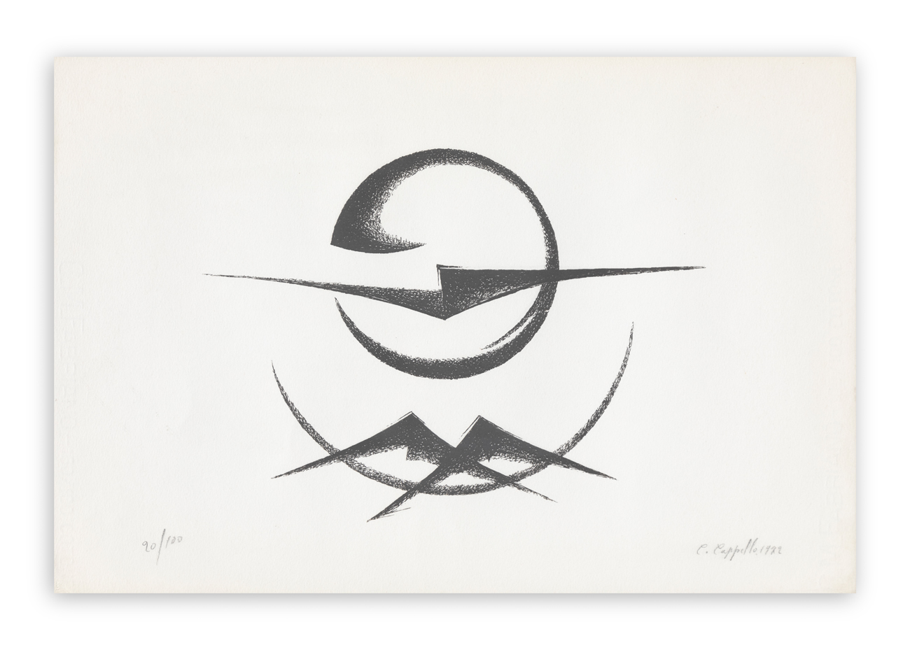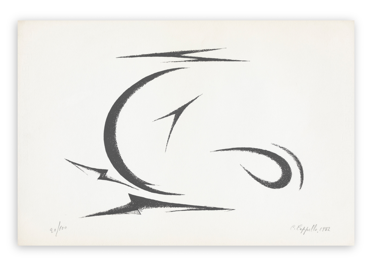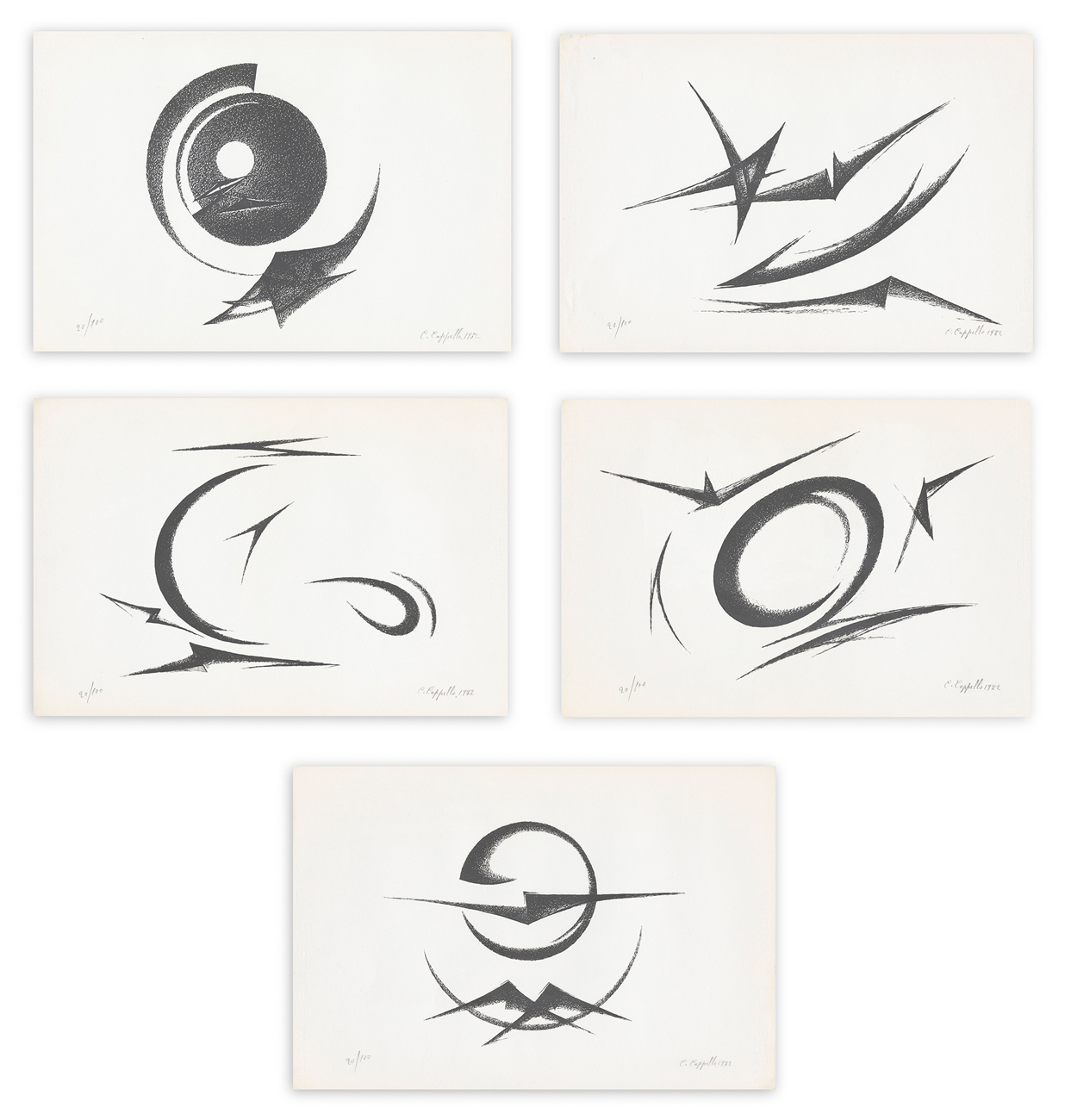 Firma, datazione (1972) e numerazione (Esemplare 20/100) a matita al fronte di ciascuno