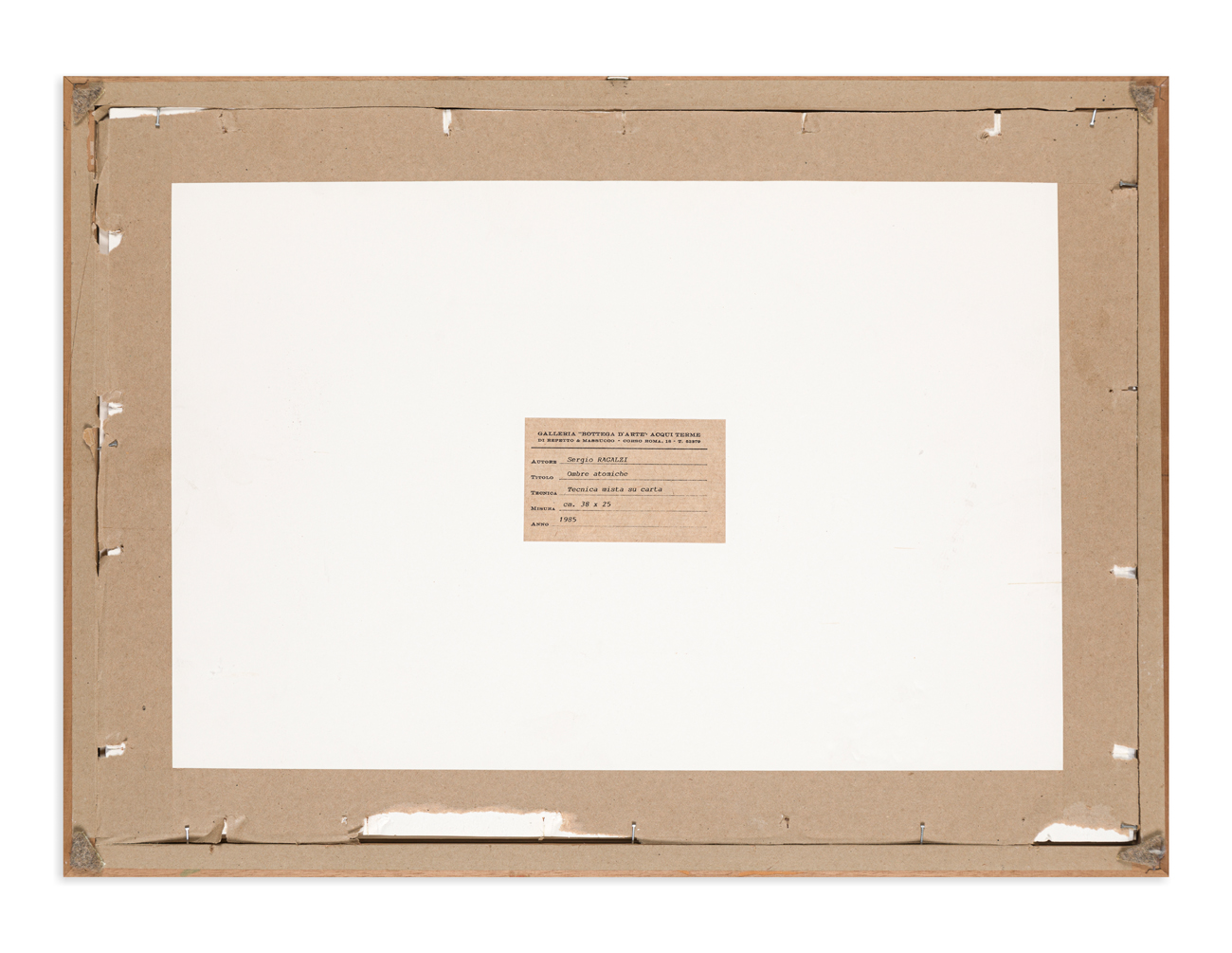 Etichetta della Galleria Bottega d'Arte (AL) al retro del cartone protettivo