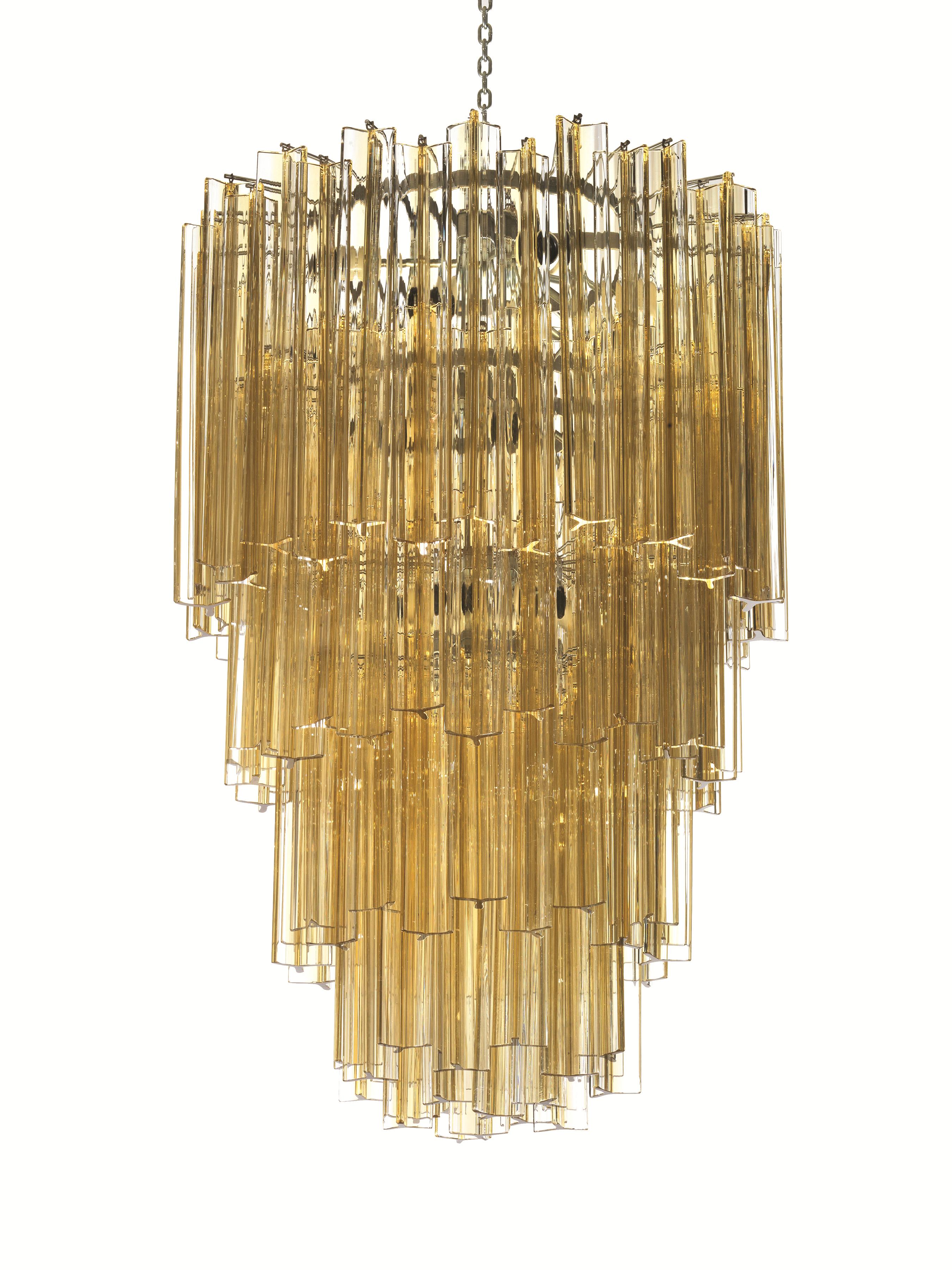 di forma cilindrica, realizzato a canne in vetro color ambra disposte su quattro ordini, a ventidue luci
