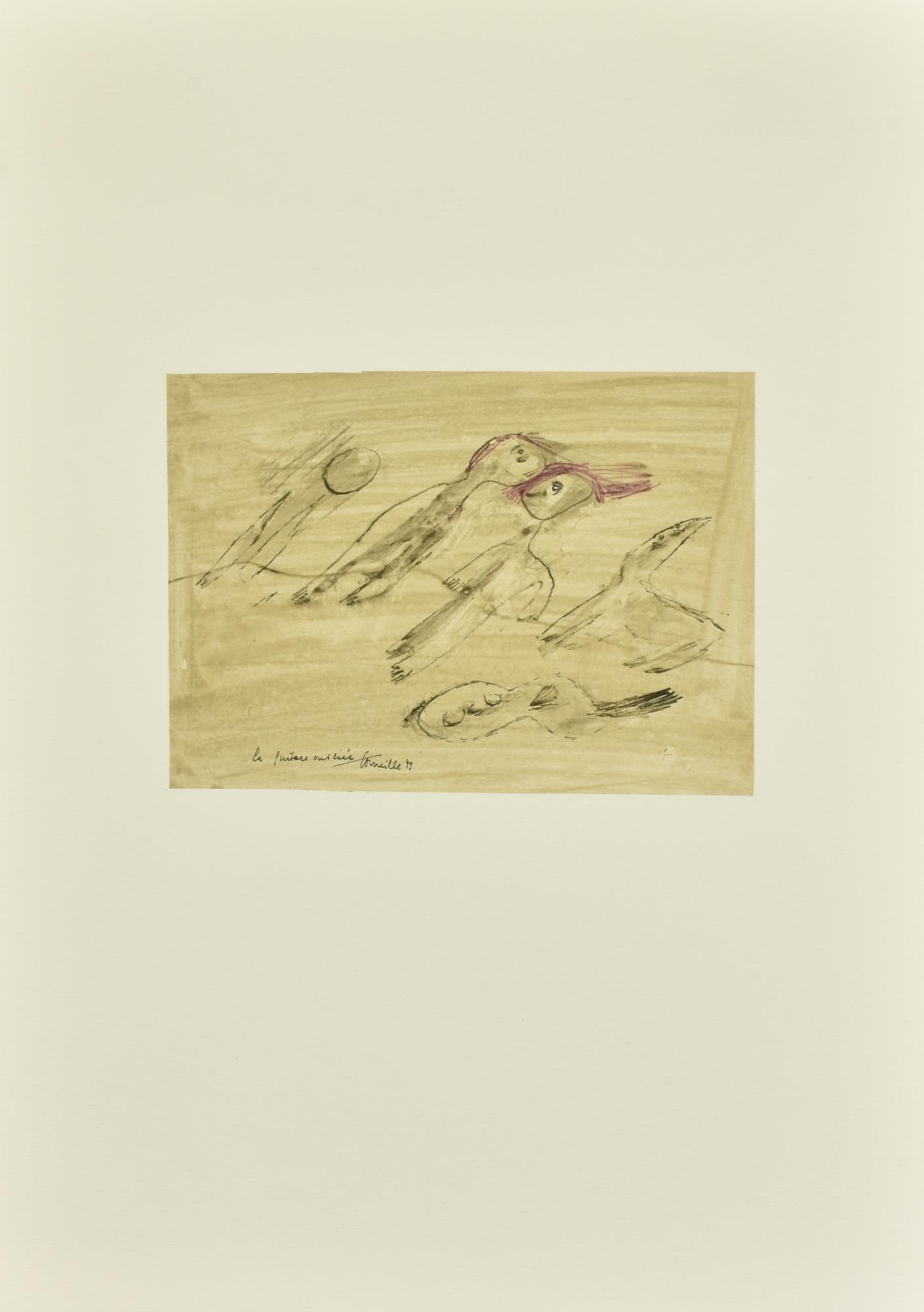 Corneille LA CHITARRA DIMENTICATA litografia su carta (d'apres), cm 52x37...