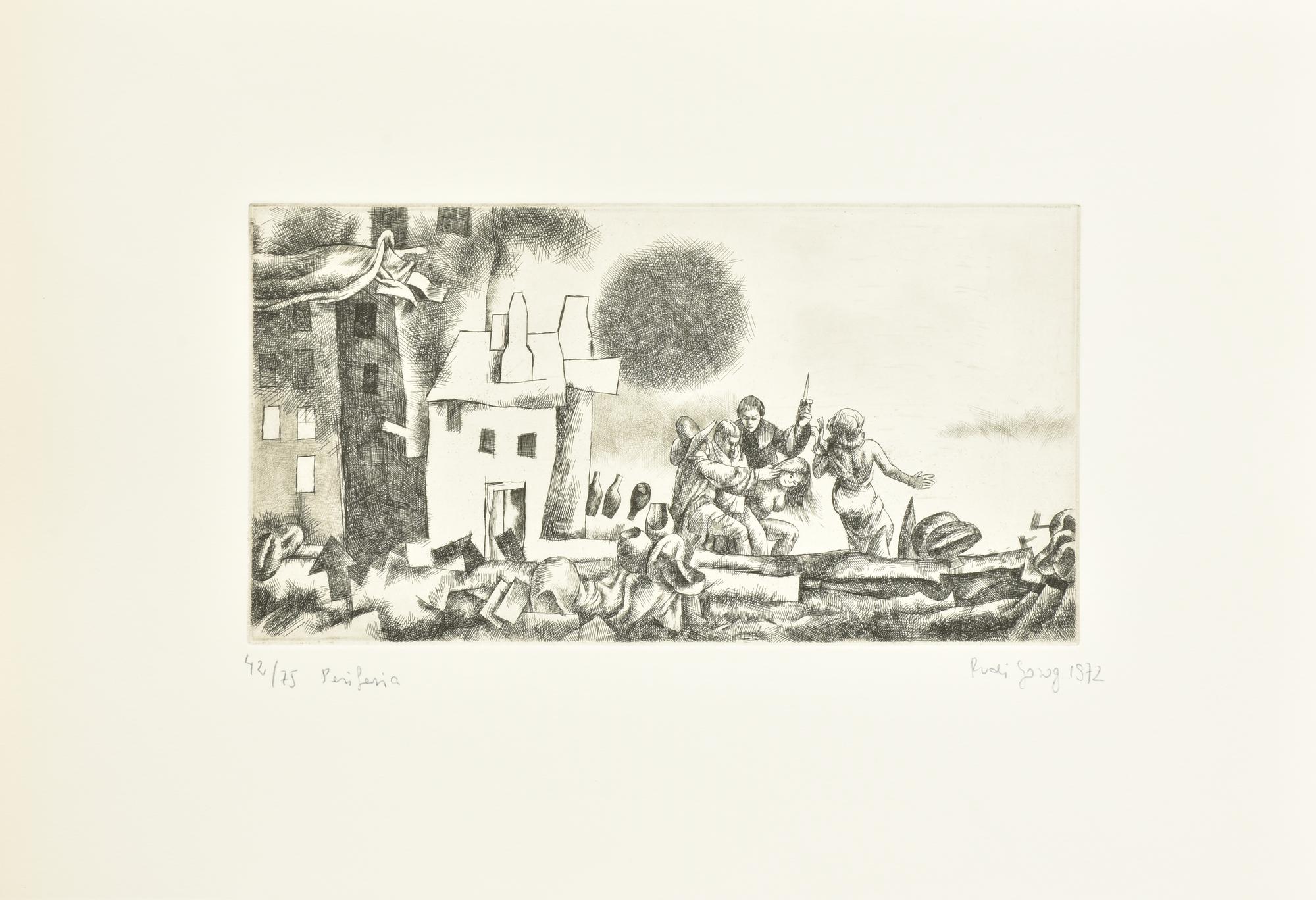 Rudi Gorog PERIFERIA incisione su carta Fabriano, battuta cm 16x30, su foglio...