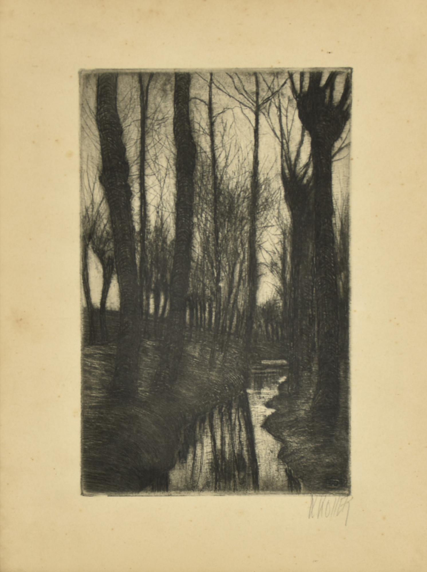 Koller PAESAGGIO INVERNALE incisione battuta, cm 26x17 foglio, 38x28 cm firma...