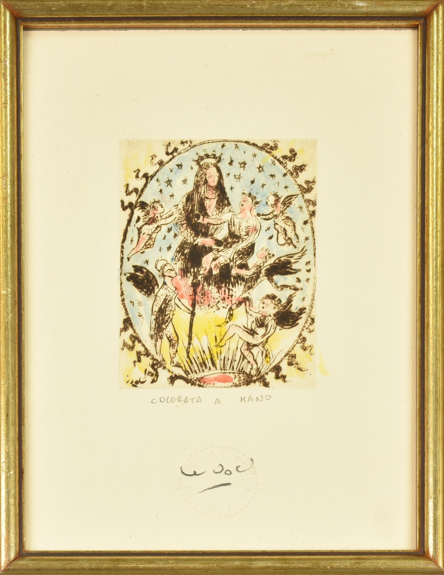 Luigi Le Voci INCISIONE SU CARTA COLORATA A MANO battuta 11,5x8,5 cm, su...