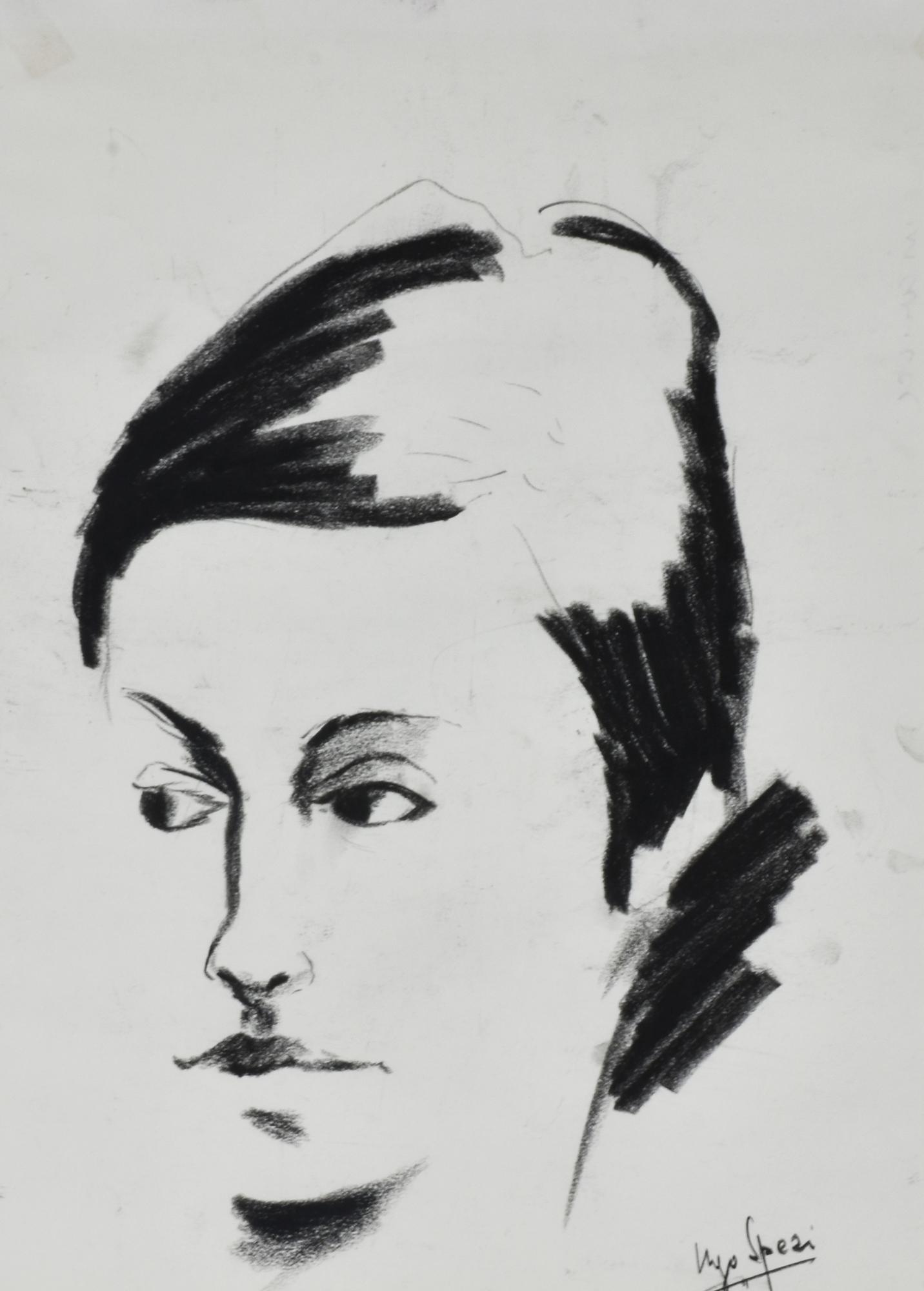 Ugo Spezi RITRATTO carboncino su carta, cm 40x29 firma
