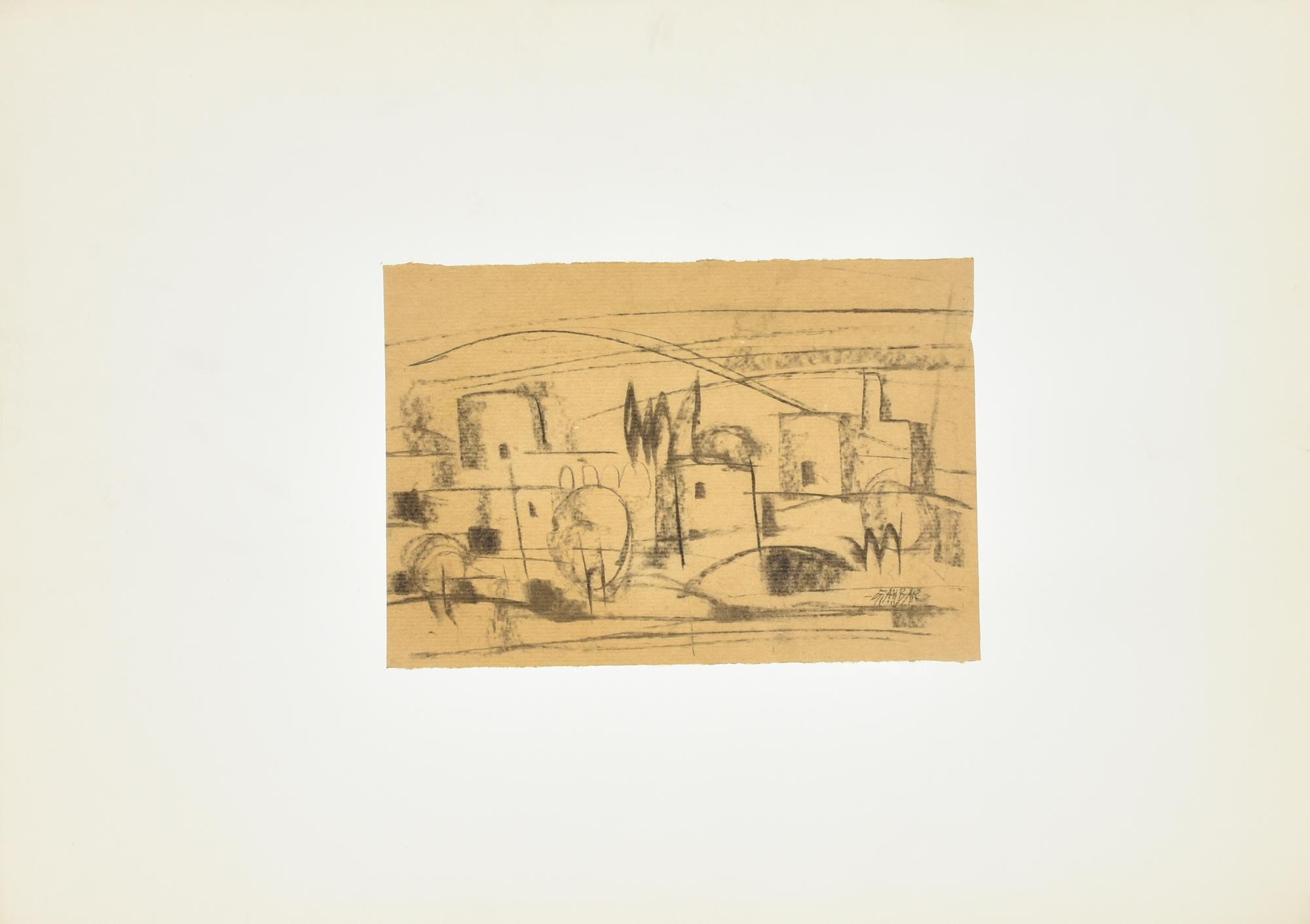 GIANBAR (Gianni Baretta) PAESAGGIO MAROCCHINO carboncino su carta applicata...