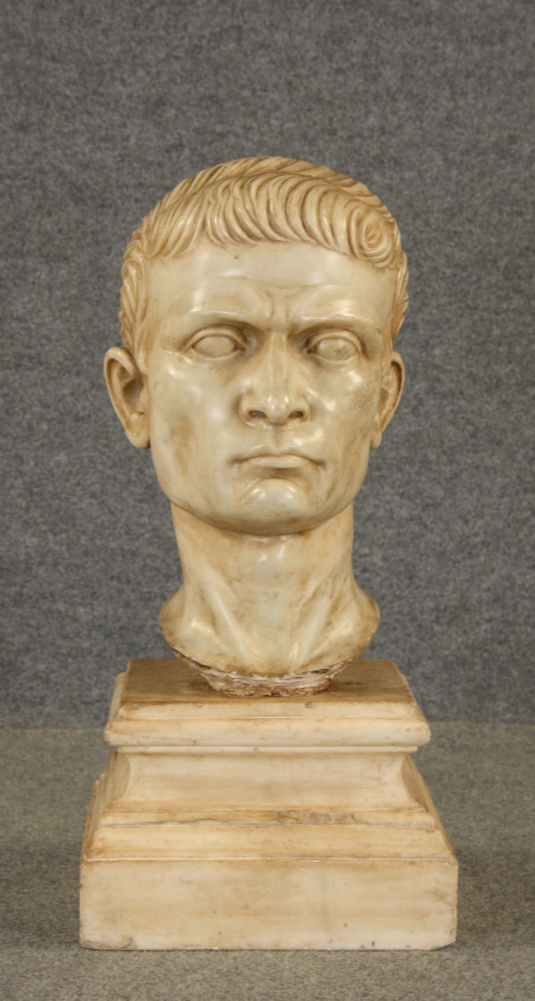 Scultura in marmo bianco raff. ''TESTA DI UOMO''. Inizi XIX secolo. Mis. Lung. cm. 24 Alt. cm. 34 Prof. cm. 21 ca.