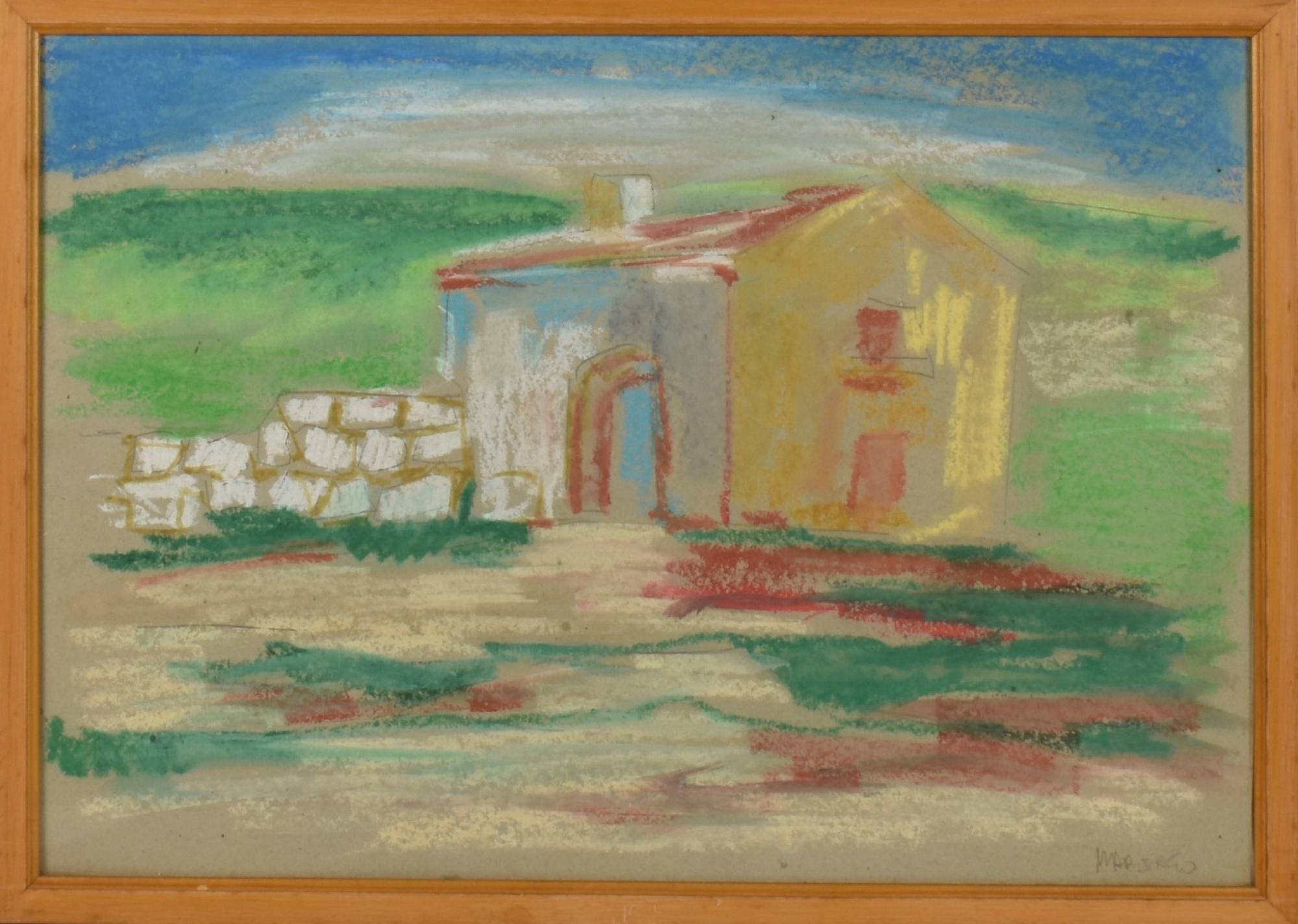 Luigi Marengo CASOLARE pastello a olio e matita su cartoncino, cm 35x40 firma