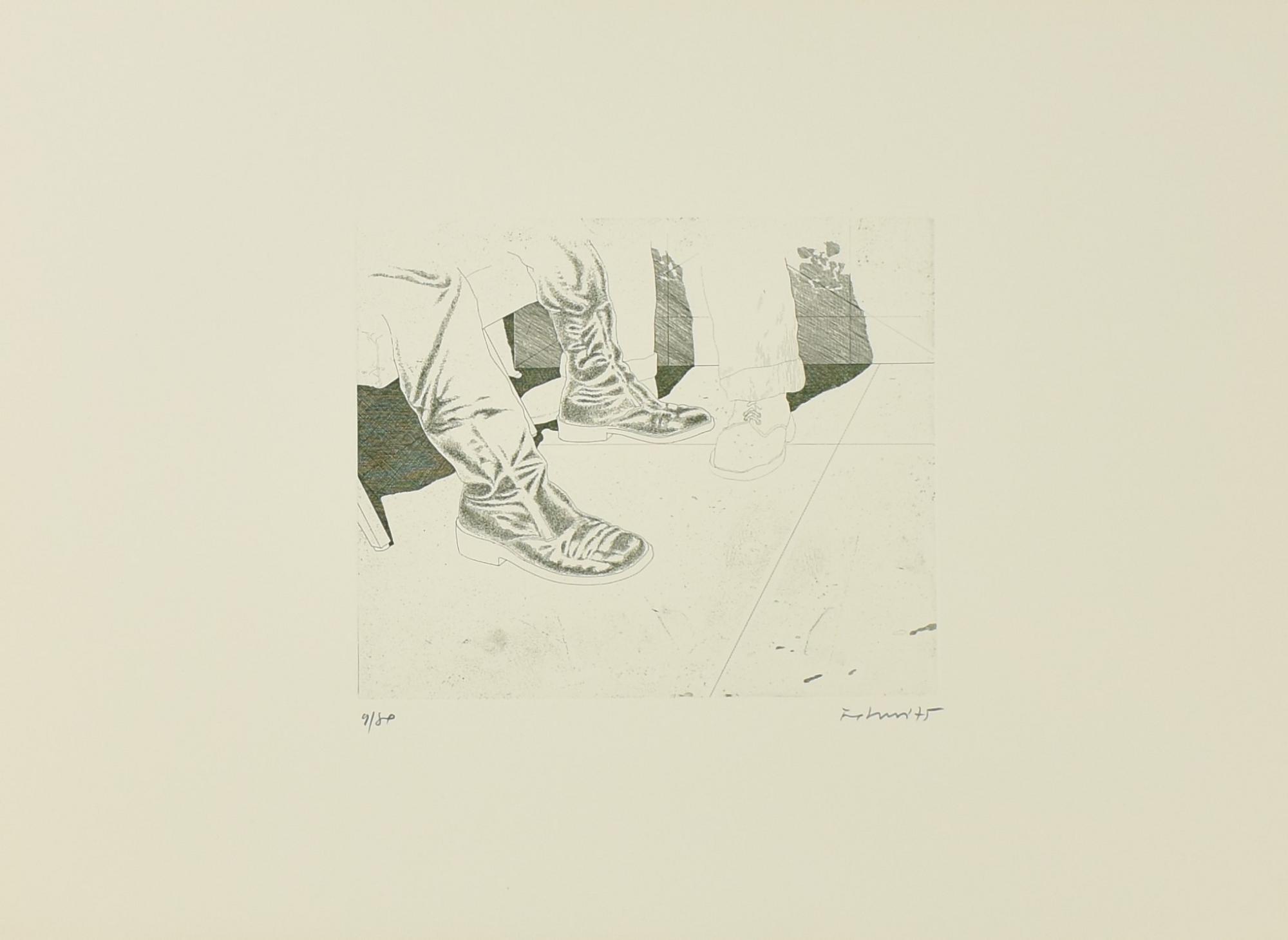Marco Fidolini CARTELLA 5 ACQUEFORTI 'IL PITTORE E L'INTRUSO INQUETANTE;...