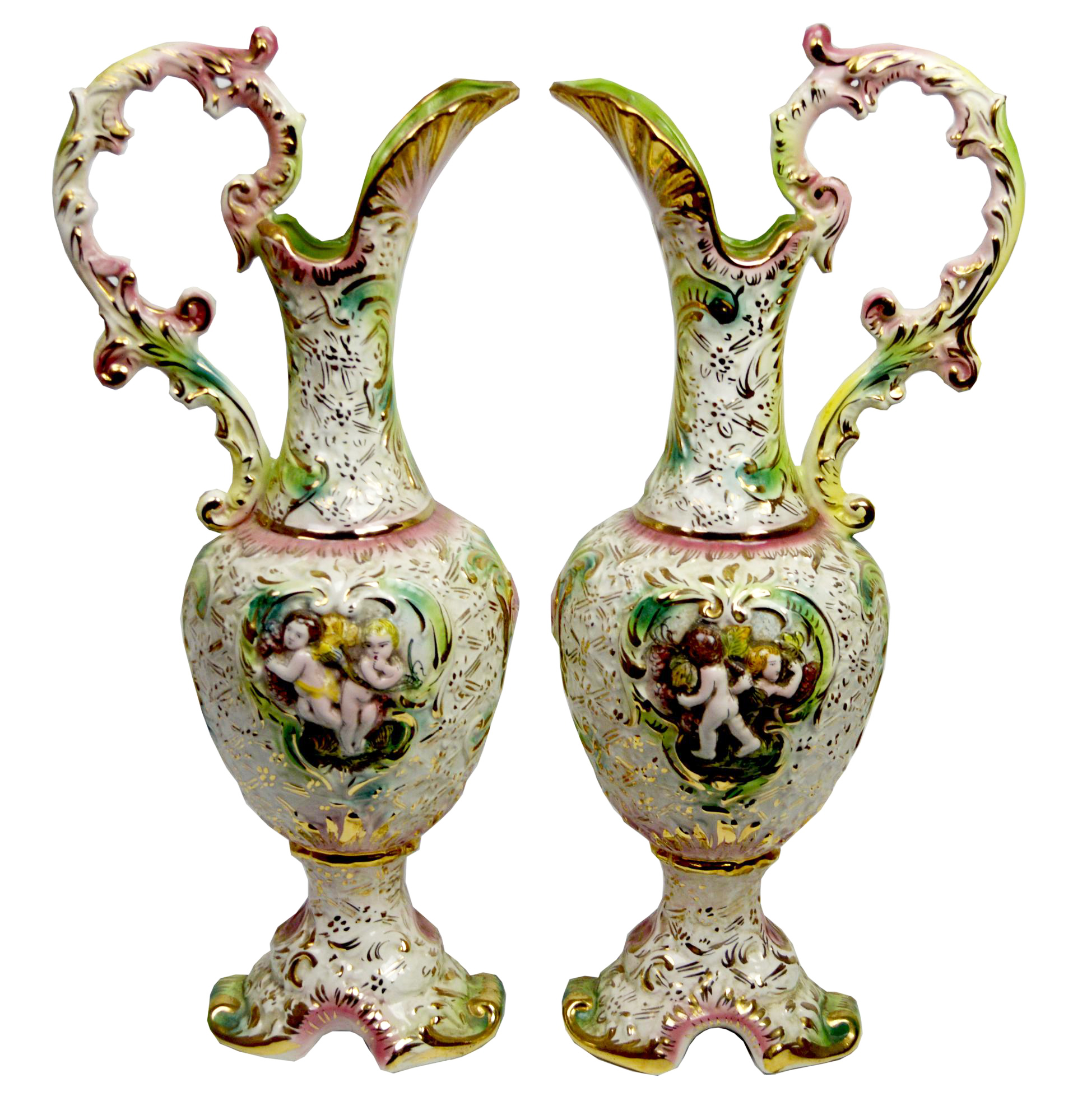 manifattura Capodimonte, decorati con putti e motivi dorati, h cm 58 ciascuno