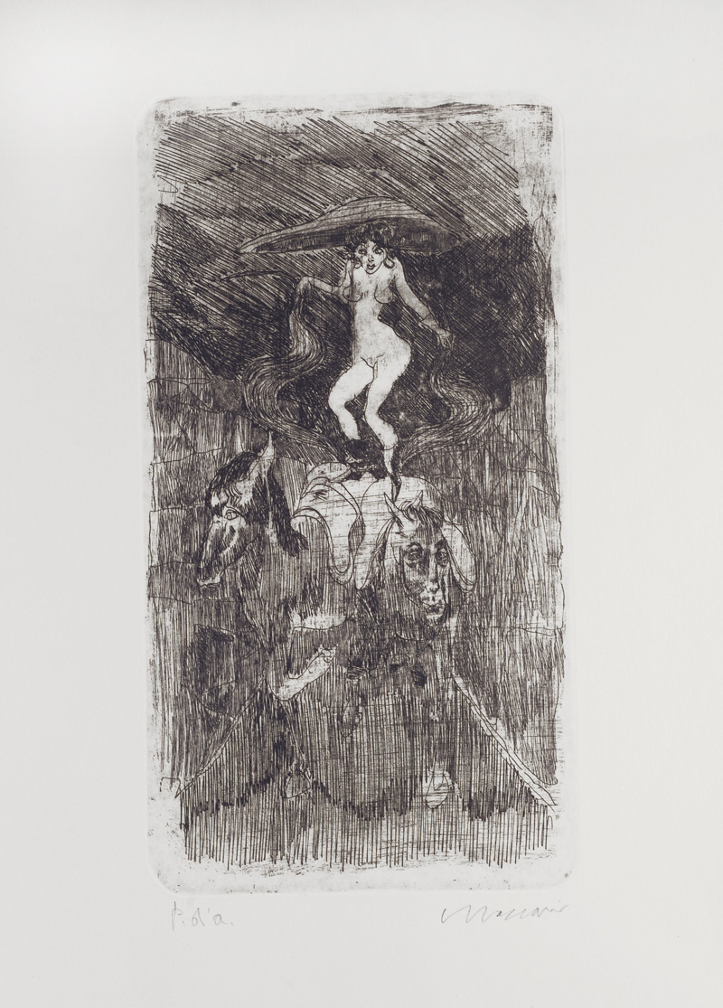 Mino Maccari (Siena, 1898 - Roma, 1989) SENZA TITOLO Acquaforte, mm. 475x350 (foglio); mm. 345x185, (lastra); es. pda Firma in basso a destra, tiratura in basso a sinistra.