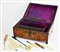 in boise de rose, con applicazioni in bronzo dorato, porcellana e madreperla. All'interno vari scomparti con piccoli strumenti in osso